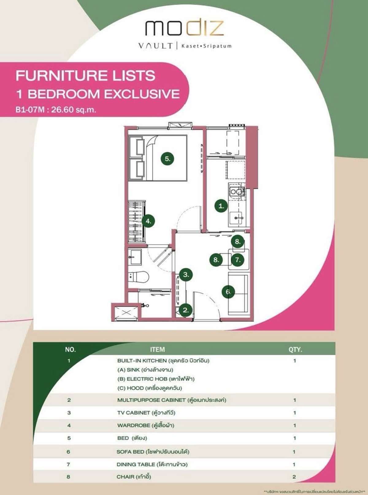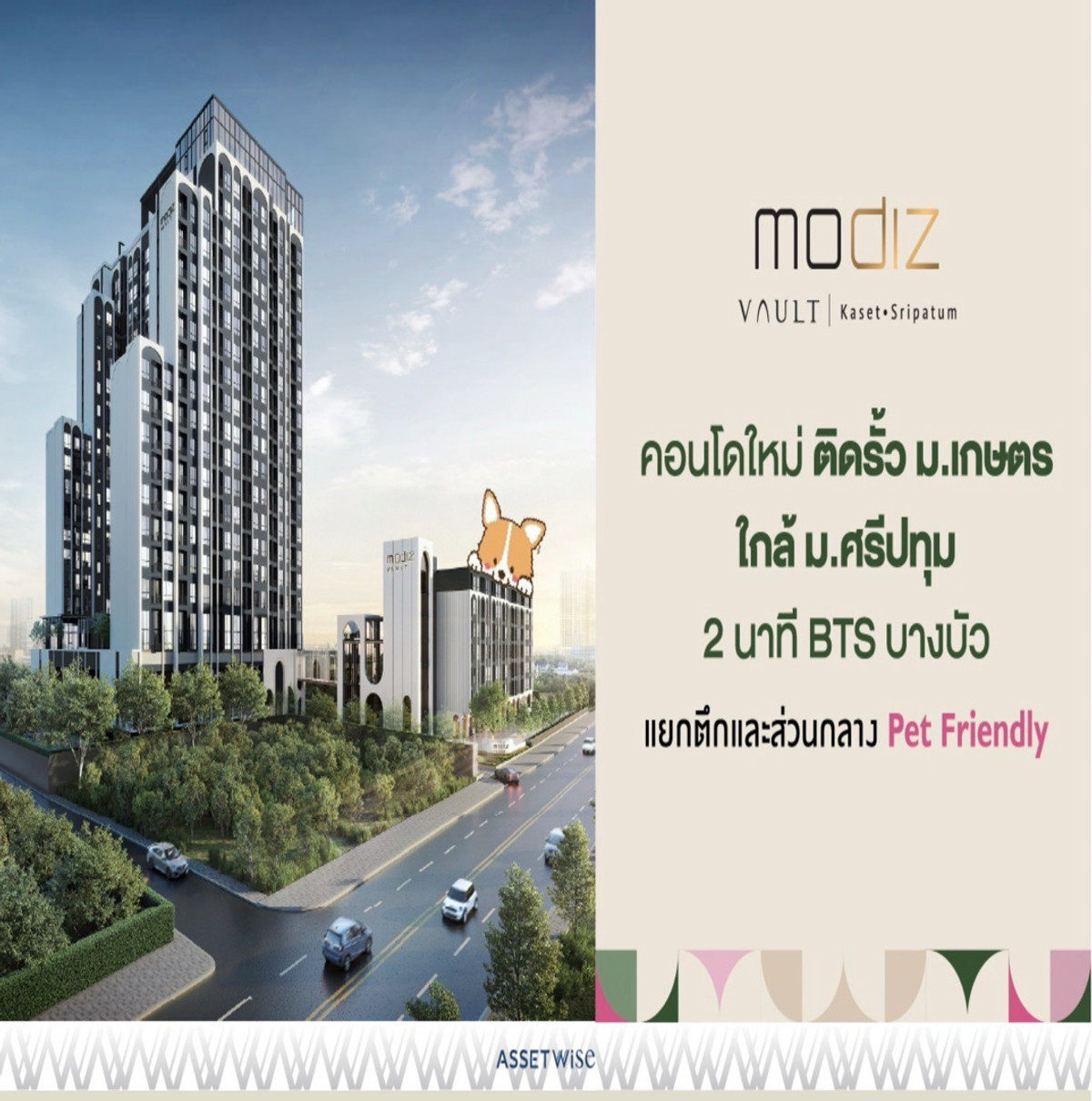 Down payment for sale, Modiz Walt Kaset Sripathum, pool view, 11th floor, size 28.70 sq m., 2 beds, 1 BR Extra type, contact 0982492898, Line ID 982492898