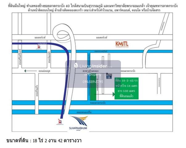 Land for sale, Lat Krabang 40, land size 18 rai 2 ngan 42 square wah , front width 54 meters, length 530 meters Zone: Green, near Avenue 4 and Robinson, King Mongkuts University. Ladkrabang soldiers Lat Krabang District Office Suvarnabhumi Airport, near Airport Link, the end of which passes through Soi Lat Krabang 40. There are two exits. In front of the alley and behind *** Selling price 334,890,000 baht *** Transfer half Total land 7,442 square wah Selling price 45,000 baht per square wah Total price 7,442 x 45,000 = 334,890,000 baht Inquire and make an appointment to view the property every day Contact number Khun Um (line id : sasiroj12) Contact numberKhun Ann (line I.d. : Contact number) VK9 Property Company Limited VK9PROPERTY CO.,LTD. Consultancy and service Buy-Sell-Rent real estate Happy to serve you