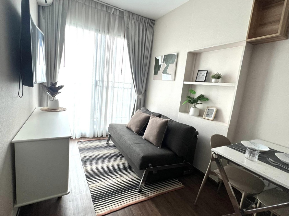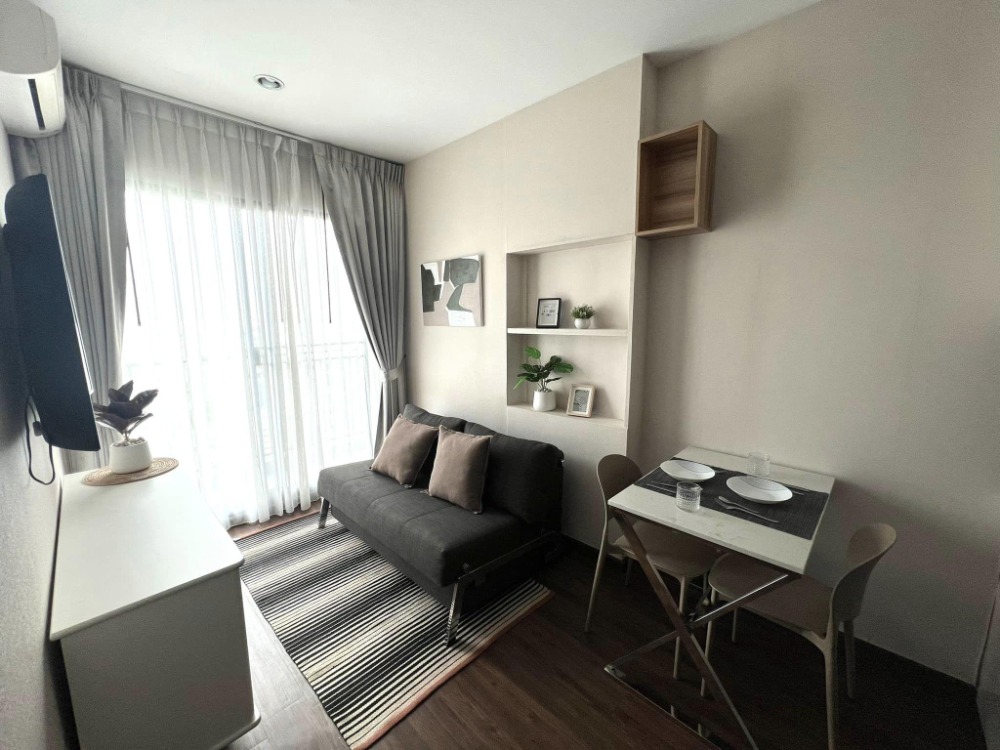 C Ekkamai 1 bedroom, 1 bathroom, 24th floor 17,000 baht/month (1 year contract) Decorated room, ready to move in. Complete furniture and electrical appliances: refrigerator, water heater, TV, microwav