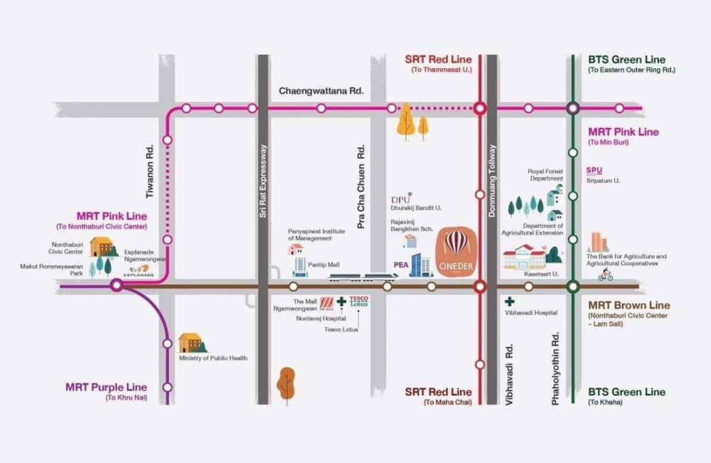 Oneder Project Room B507, 5th floor No. 99/242 Apartment B, pool view Size 23 sq.m. Free common fee Free parking for 1 car Fully furnished, ready to move in Electrical appliances included - 43-inch TV - 2-door refrigerator 5.9 cu. ft. - 20-liter microwave - 3,500 watt water heater - 1 air conditioner - Hood - Electric stove Nearby places The Mall Ngamwongwan Kasetsart University Rajavinit Bangkhen School Sarawittaya School Vibhavadi Hospital Nonthavej Hospital Provincial Electricity Authority (Head Office) Transportation Ngamwongwan Rd. Kamphaeng Phet Rd. 6 Prachachuen Rd. Utraphimuk Elevated Road (Don Mueang Tollway) Electric Train Red Line Electric Train, Bang Khen Station