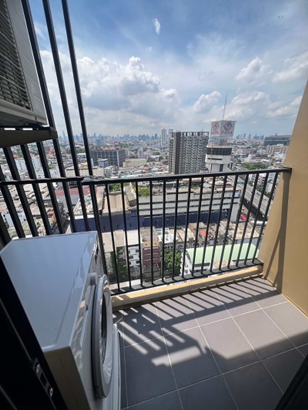 1 bedroom, 1 bathroom, 1 open kitchen, size 26 sq m., 19th floor , complete with furniture and electrical appliances + 2 air conditioners + washing machine - Very close to MRT Bang Yi Khan - Near Cent