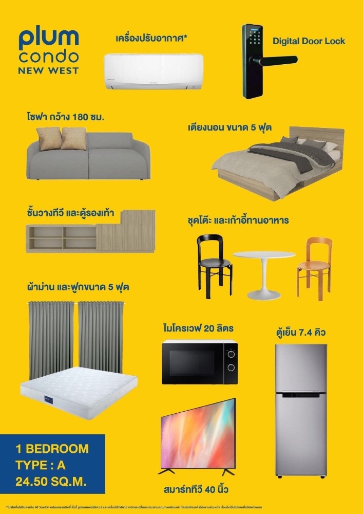 A827 Building A, 8th floor, position 27 , 1-bed room, size 24.5 sq m is the cheapest Promotion room of the project There are only 6 rooms in the project (positions 27,28, floors 6-8). This room is on the 8th floor, the highest of the Pro room Therefore it is a room that You can live in it yourself and get a good price. You can rent it out with a better yield than other rooms. The full price of the project is 1,740,000 baht , got a discount in the VIP round for a total of 280,000 baht , leaving the actual contract price only 1.46 million baht (59,xxx baht/sq m only) + seller profit (Call) This room has a promotion for Fully Furnished, fully decorated + electrical appliances. And curtains in the room are included. Built-in wardrobe Built-in kitchen set, electric stove, range hood, air conditioner Digital door lock, bed with mattress, sofa, TV shelf, dining table , electrical appliances such as a 40-inch TV, refrigerator, microwave, including curtains The owner is selling it himself, not through an agency, no commission . If interested, contact. Contact number Line ID : pop.wp