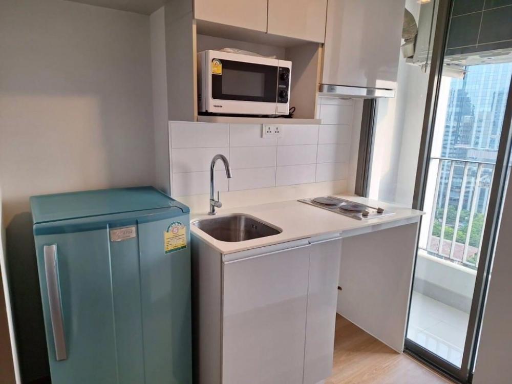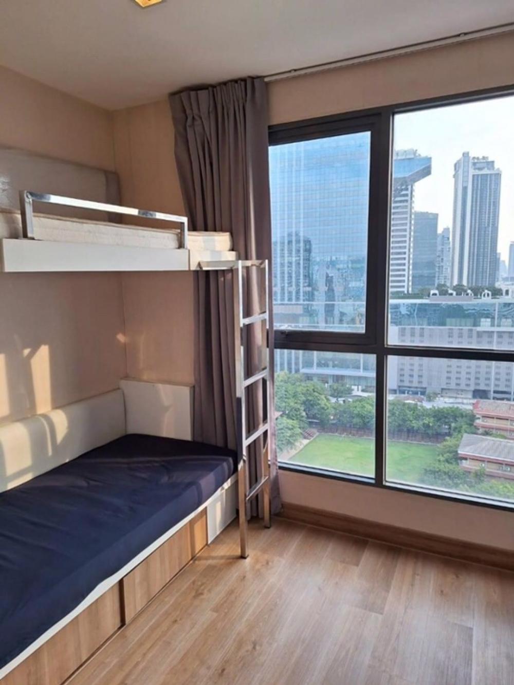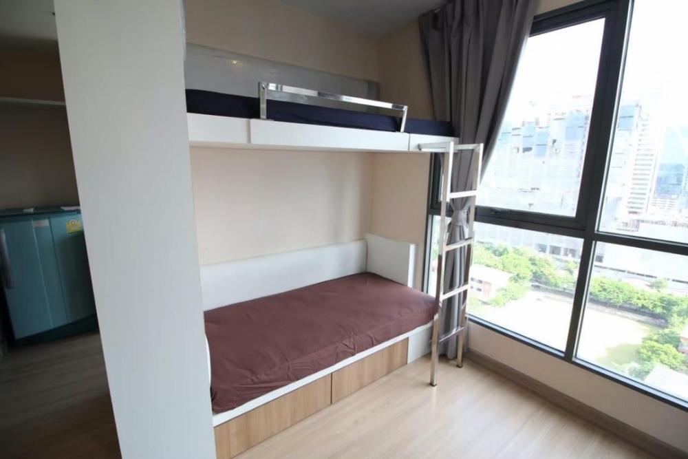 NC-R1559 for rent Ideo Mobi Phayathai - size 21.30 sq m., 19th floor, south side - decorated with built-in bunk beds, 2 work desks, beautiful, minimalist style - new Smart TV, air conditioner, refrigerator , water heater - view of the lawn of Santhirat Sc