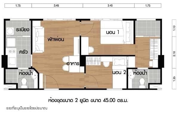 LUMPINI VILLE SUKHUMVIT 77-2 Lumpini Ville Sukhumvit 77-2 *** 2 bedrooms, parking for 2 cars *** Beautiful view, good wind Size 45 sq m., separated rooms Building A2, 15th floor, beautiful view with f