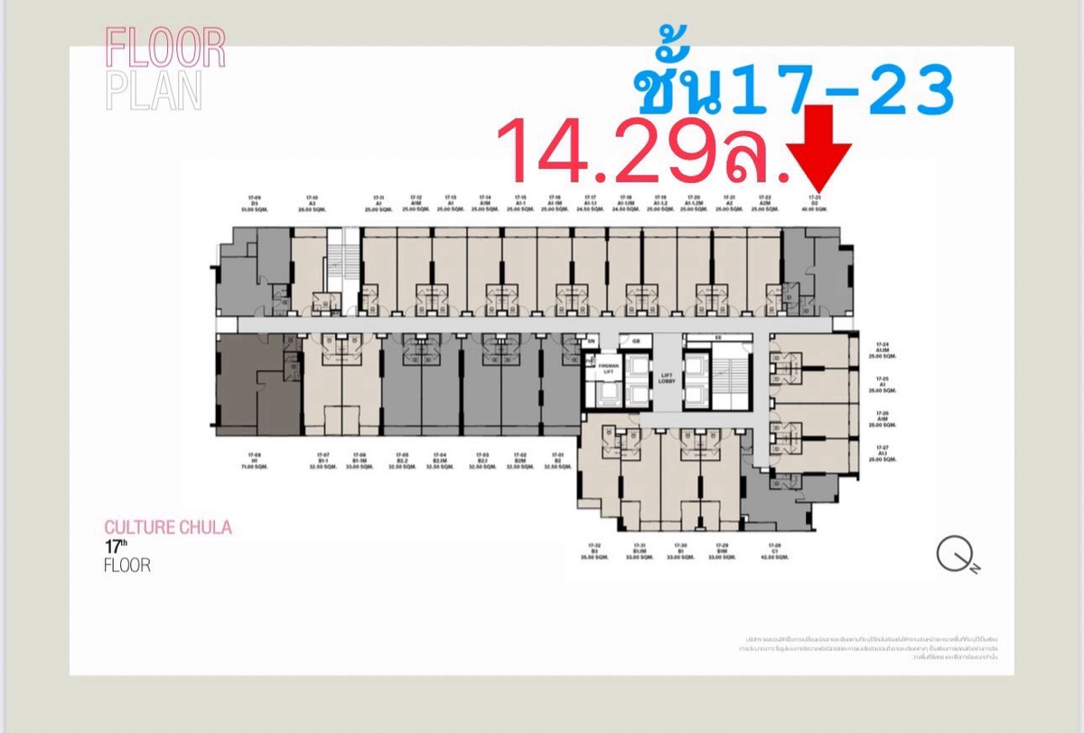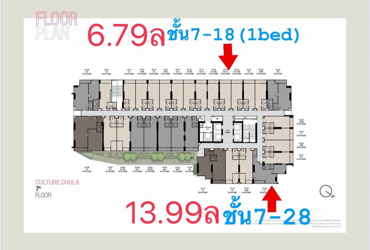 Urgent sale!! Good price, 2 bedrooms, 2 bathrooms, 2 parking spaces Guaranteed the best price!!!❤️ 2 bedrooms, 2 bathrooms, 2 parking spaces, size 69 sq m. Room next to a beautiful garden Room C1 is sold out since the first day!!🩷 It is a wide room in front of the building with an open view. The view of the Red Cross Garden is pleasing to the eyes. It is on the 7th floor, which is the floor with the garden. (2 bedrooms, 3 bathrooms, 2 parking spaces) area 66.5 sq m. (48 + upper floor 18.5) price 14,290,000 🟢 Floor 7-28 area 69 sq m. (42.5 sq m. + upper floor 26.5) Price 13,890,000 🟢Floor 12-28 Price 14,690,000 💜💜💜1 bedroom, Pure 6.69 million baht and 2 bedrooms, 2 bathrooms, 17th and 24th floors, beautiful location (interested, please inquire) D Line : inno5555 ✨✨✨Interested persons please contact Contact number✨✨✨ -MRT Silom 250 meters -BTS Sala Daeng 250 meters -MRT Sam Yan 300 meters Opposite Chula and Chula Hospital