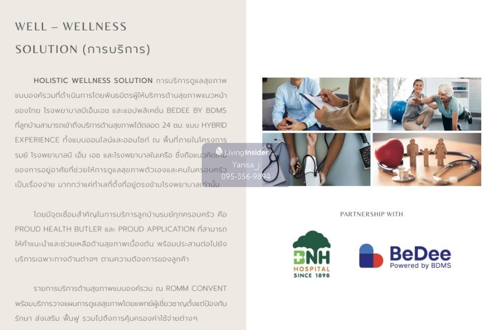 The only new condo on Convent Road with only 180 units BTS Saladaeng only 500 m. Parking 110% WELLNESS SERVICES BNH Hospital- Holistic health care services By partners from BNH Hospital and the BeDee by BDMS application, you can access health services 24 hours a day with a Proud Health Butler health assistant. ☎️ Call: Contact number Khun Li 📲 Line : https://line.me/ti/p/P5uKZJp8v6
