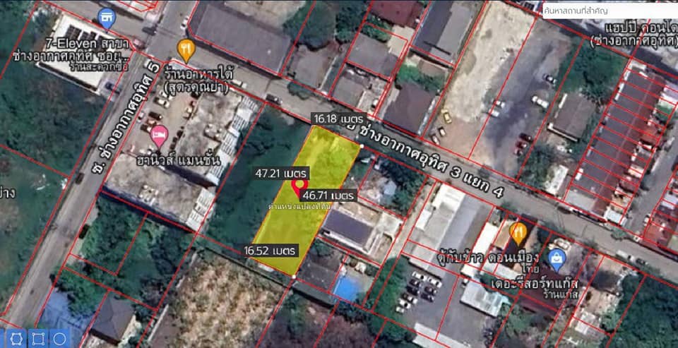 #Don Mueang land #Land of Chang Akat Uthit Beautiful plot of land for sale. Soi Chang Akat Uthit 3, Intersection 4 (there is a building, namely 1 house) ** Area 201 sq m. ** Road frontage 16 m. Highli