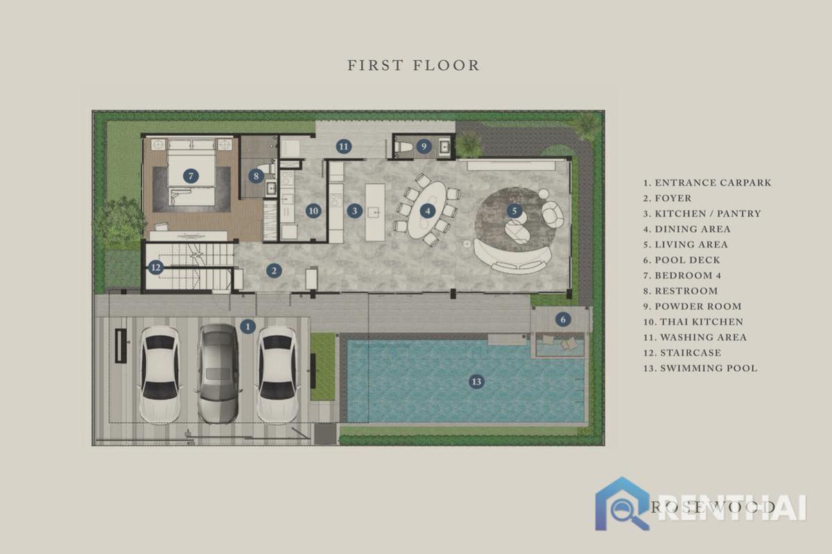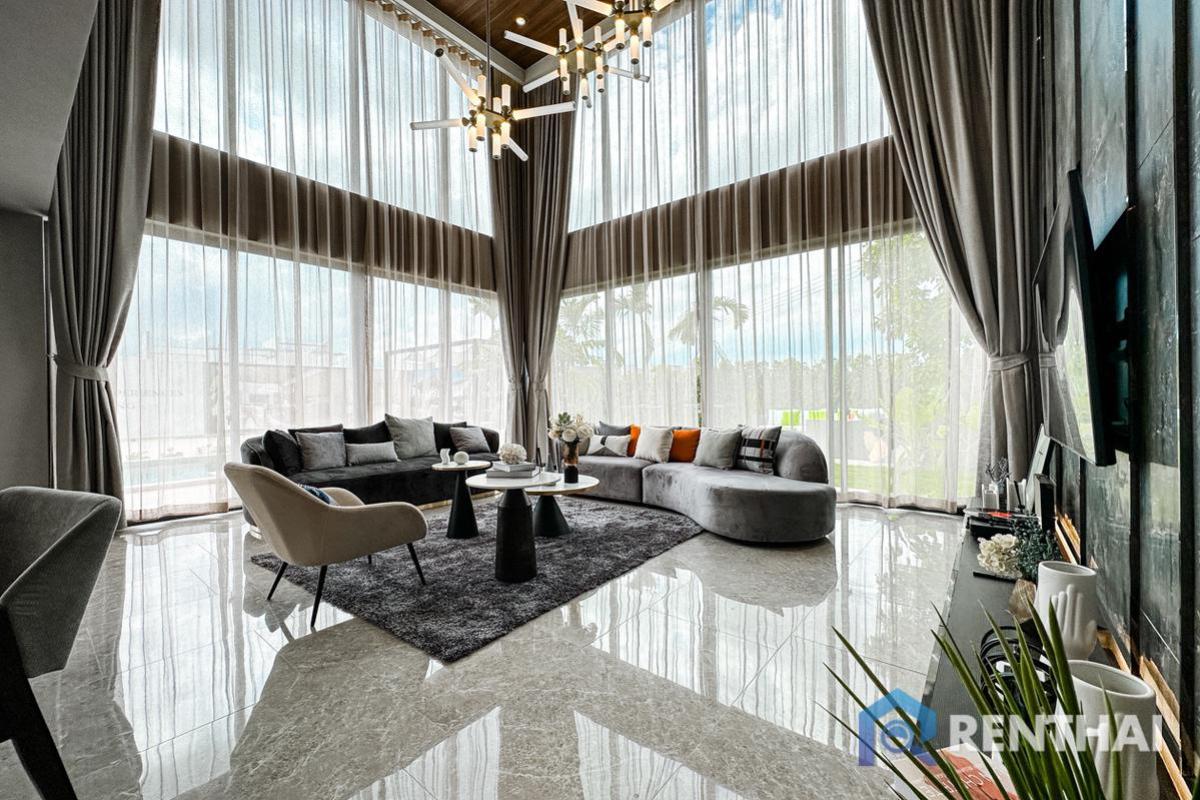 Listing code: #RT01577 This beautiful 2-storey house is located in a great neighborhood of Huai Yai, Pattaya. It offers 4 bedrooms and 5 bathrooms with a usable area of 375 sq.m. and a land size of 85 sq.w., boasting an impressive high ceiling of 6.2 Meters. It also features a private swimming pool and comes with stunning mountain views. Facilities include a pool, garden, clubhouse and 24/7 security. Don't miss out on this beautiful property! Starting price: 17,100,000 baht - 4 bedrooms, 5 bathrooms - Land size 85 sq.w. - Usable area 375 sq.m. - 2 floors - Pool view - Thai quota - Without furniture Facilities: - Pool Access - Garden Access - European kitchen - Bathtub - Terrace - Fitness, Gym - Car Parking Location: Huai Yai, Pattaya For more details feel free to contact us by Tel: Contact number WhatsApp: Contact number Line ID: minehappiness https://line.me/ti/p/4FWcxgo_eM (click the link to add line) ……………………………………………………………………… Website: https://renthai.com Facebook Page: https://www.facebook.com/renthai.pattaya Line Official: @renthai Email: Contact email Renthai - your reliable assistant in buying, selling and investing in real estate in Pattaya.
