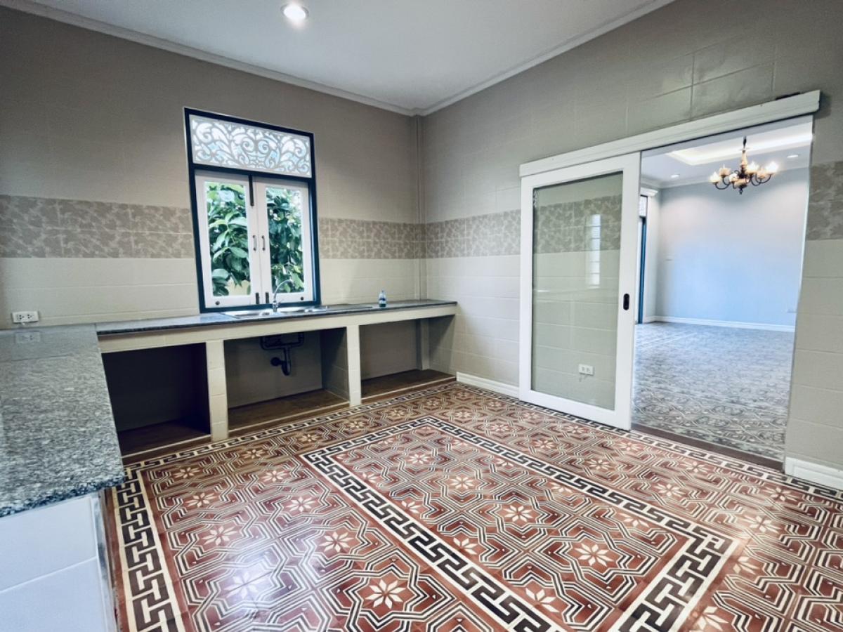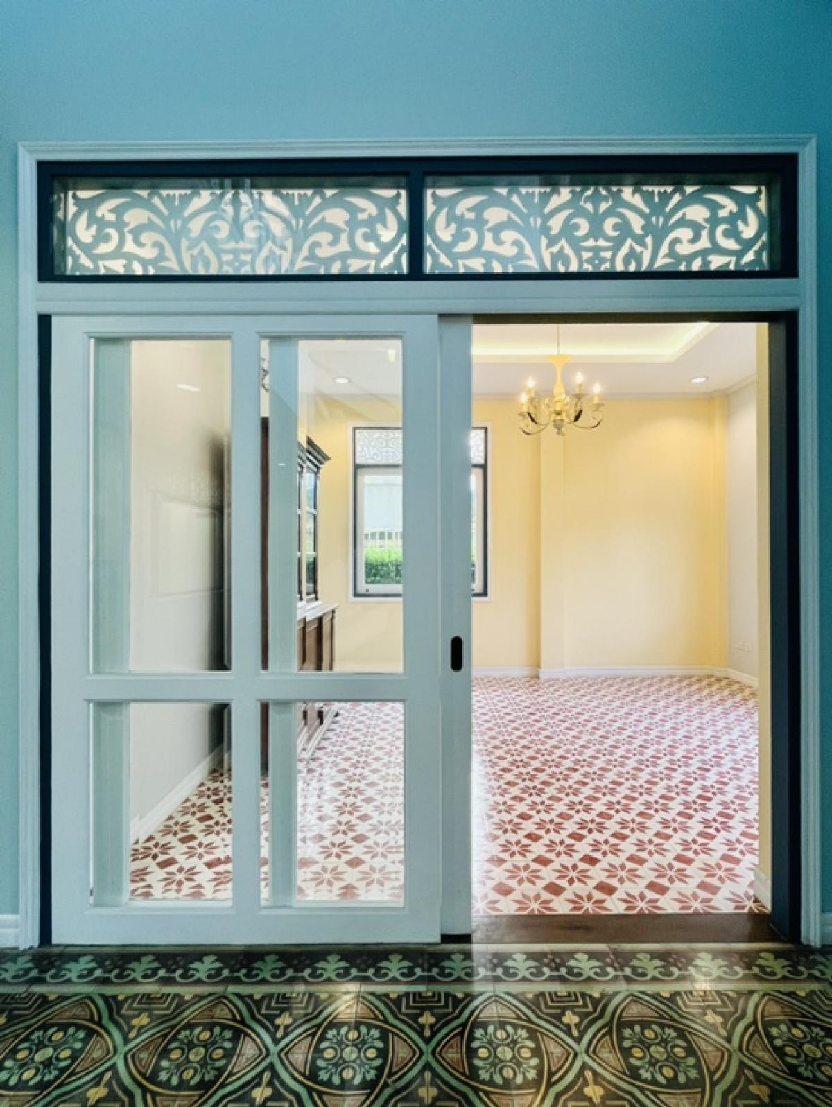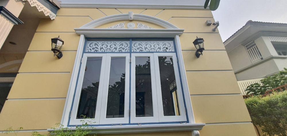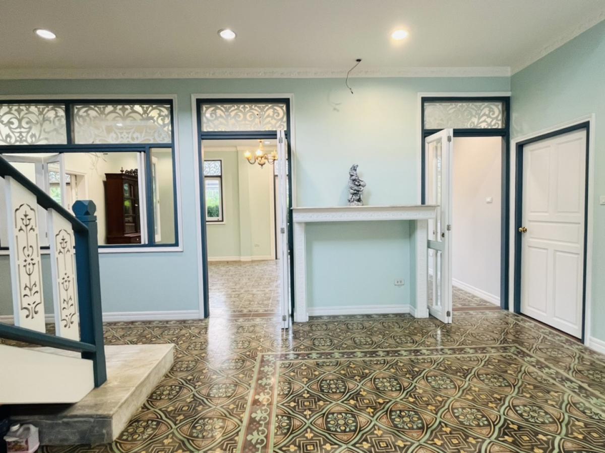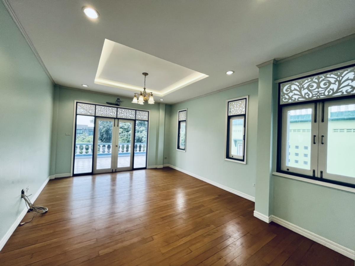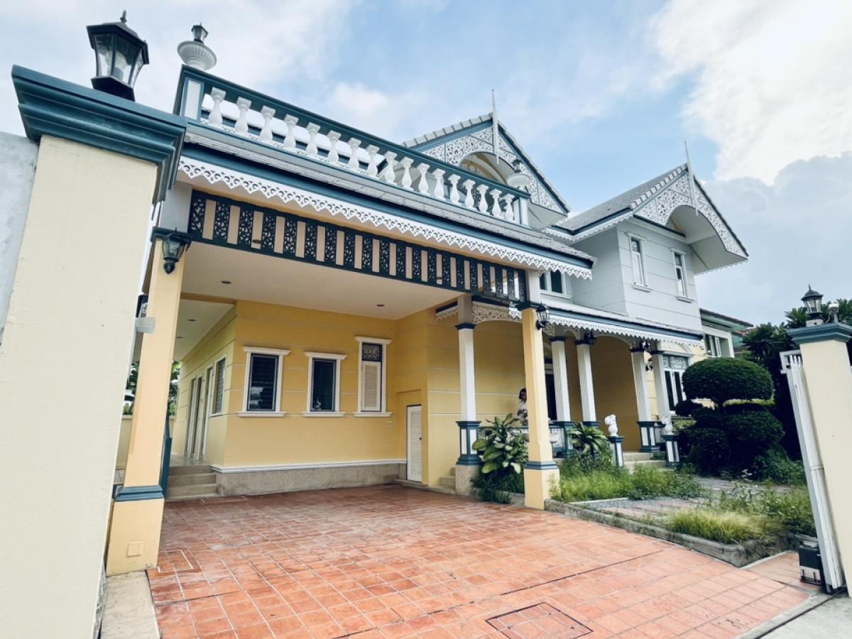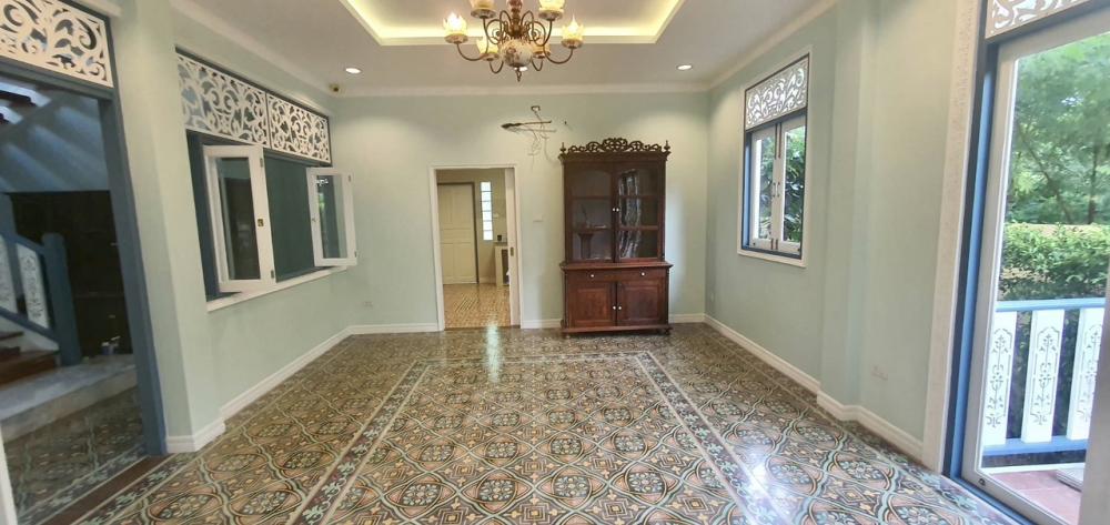 Modern vintage style house for sale, next to Ram Intra Expressway, Kaset-Nawamin, Soi Nakniwat 48, behind Crystal Park Village, 2nd floor, teak floors in every room 1. Land area 94 sq m., front of house faces north, 1 degree north, width 26x14.25 m., house area depth 380 sq m. 2. 4 bedrooms, 6 bathrooms, maids room, kitchen 14 sq m., dining room 30 sq m., hall, stairs and entrance 30 sq m., living room 16 sq m., downstairs bedroom 24 sq m., en-suite bathroom Entrance hall 16 sq m., walkway on the side of the house 12 sq m., maids room 14 sq m., storage room 3.5 sq m. 3. Upstairs, master bedroom 41 sq m. with balcony upstairs 30 sq m., Buddha room 7.5 sq m., hall upstairs 18 sq m., small bedroom 18 sq m., bedroom 2 30 sq m. Can park 2 cars in the house and can park outside the house, title deed ready to transfer Location: Soi Nakniwat 48, Intersection 14, one way in Located behind Crystal Park Village. Approximately 4.5 km from Central Eastville Satriwitthaya 2 School approximately 3 km Approximately 4 km from Wat Sun Approximately 5.5 km from Crystal Park You can take the Ekkamai-Ramintra and Kaset Nawamin expressways approximately 5 km Exit at Ratchada 32, Ratchada Rd. 3.5 km Exit at Lat Phrao Rd. approximately 5 km. Yellow Line To Lat Phrao Bus Station 4 km For more information Call Contact number LINE ID : suphon95 or click http://line.me/ti/p/~suphon95 Click Line https://lin.ee/qMaxsnd #Selling a second-hand house #Selling a single house #Selling a single house near Ram Intra Expressway #Selling a single house near Central Eastville #Selling a single house Kaset Nawamin #Selling a single house near Crystal Park #Selling a single house near the expressway #Selling a single house Nak Niwat #Single house Lat Phrao