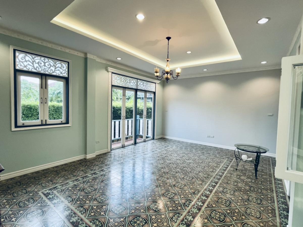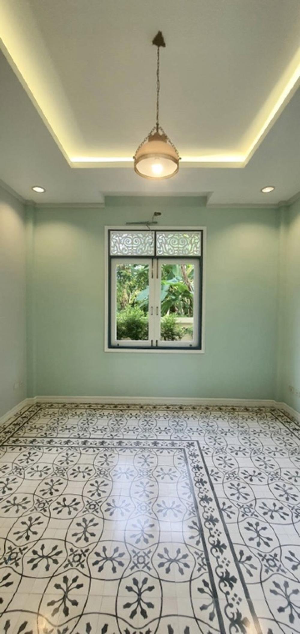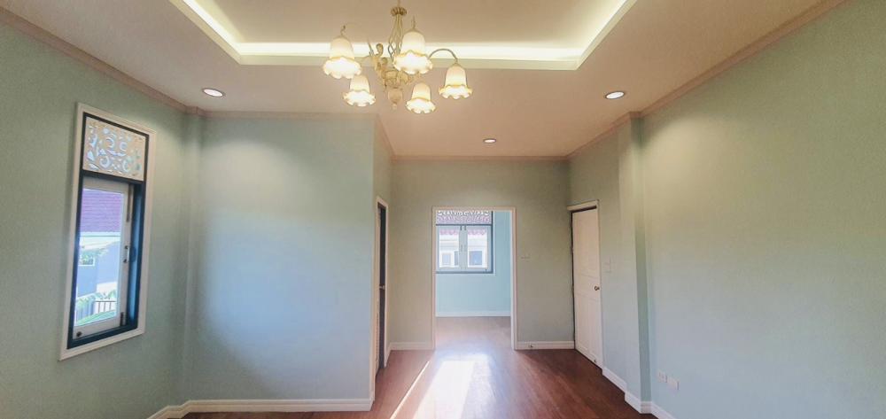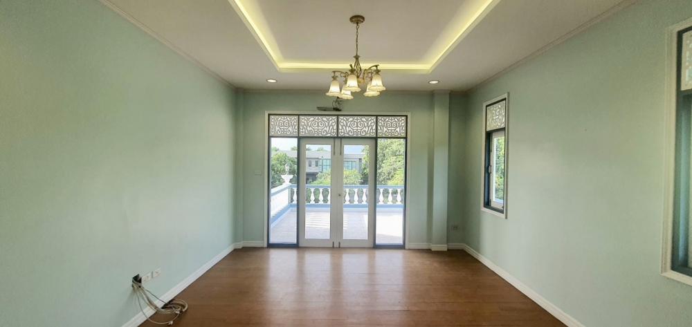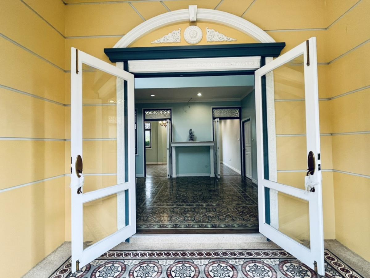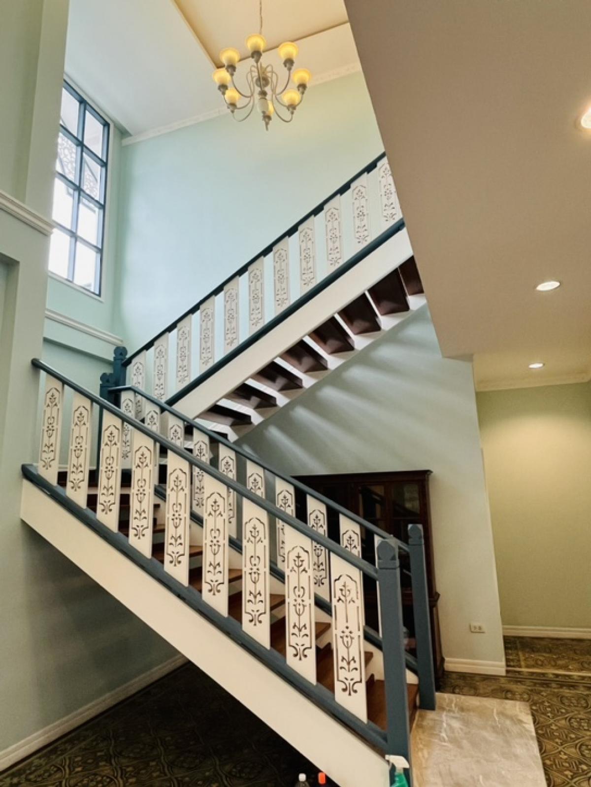 Modern vintage style house for sale, next to Ram Intra Expressway, Kaset-Nawamin, Soi Nakniwat 48, behind Crystal Park Village, 2nd floor, teak floors in every room 1. Land area 94 sq m., front of house faces north, 1 degree north, width 26x14.25 m., house area depth 380 sq m. 2. 4 bedrooms, 6 bathrooms, maids room, kitchen 14 sq m., dining room 30 sq m., hall, stairs and entrance 30 sq m., living room 16 sq m., downstairs bedroom 24 sq m., en-suite bathroom Entrance hall 16 sq m., walkway on the side of the house 12 sq m., maids room 14 sq m., storage room 3.5 sq m. 3. Upstairs, master bedroom 41 sq m. with balcony upstairs 30 sq m., Buddha room 7.5 sq m., hall upstairs 18 sq m., small bedroom 18 sq m., bedroom 2 30 sq m. Can park 2 cars in the house and can park outside the house, title deed ready to transfer Location: Soi Nakniwat 48, Intersection 14, one way in Located behind Crystal Park Village. Approximately 4.5 km from Central Eastville Satriwitthaya 2 School approximately 3 km Approximately 4 km from Wat Sun Approximately 5.5 km from Crystal Park You can take the Ekkamai-Ramintra and Kaset Nawamin expressways approximately 5 km Exit at Ratchada 32, Ratchada Rd. 3.5 km Exit at Lat Phrao Rd. approximately 5 km. Yellow Line To Lat Phrao Bus Station 4 km For more information Call Contact number LINE ID : suphon95 or click http://line.me/ti/p/~suphon95 Click Line https://lin.ee/qMaxsnd #Selling a second-hand house #Selling a single house #Selling a single house near Ram Intra Expressway #Selling a single house near Central Eastville #Selling a single house Kaset Nawamin #Selling a single house near Crystal Park #Selling a single house near the expressway #Selling a single house Nak Niwat #Single house Lat Phrao