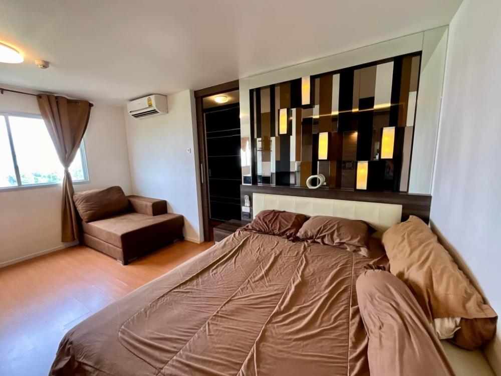 For rent Lumpini Condo Town Romklao-Suvarnabhumi near Suvarnabhumi Airport Building A3, 6th floor, size 42 square meters, largest room in the project 1 Master bedroom 1 Big living room 1 bathroom, large built-in wardrobe , complete furniture and electrical appliances Ask for more information. Or make an appointment to see the room Contact number