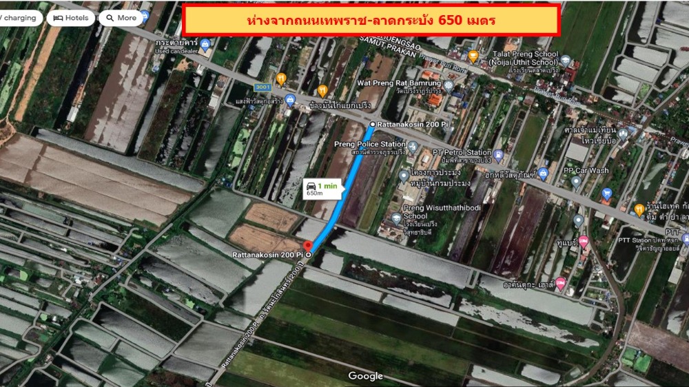 Land for sale, 53 rai, next to Rattanakosin 200 Years Road - price 4.5 million baht per rai - yellow city plan - Width 114 meters, length 890 meters - Rattanakosin Road, 8 lanes - 11 km from Bangna Trad Road -15 km from Suvarnabhumi - 650 meters from Theparat Ladkrabang Road If interested, contact Chutikarn Tel: Contact number Line ID Contact number