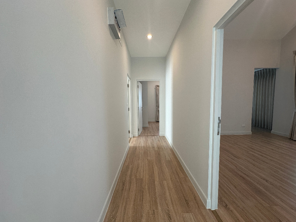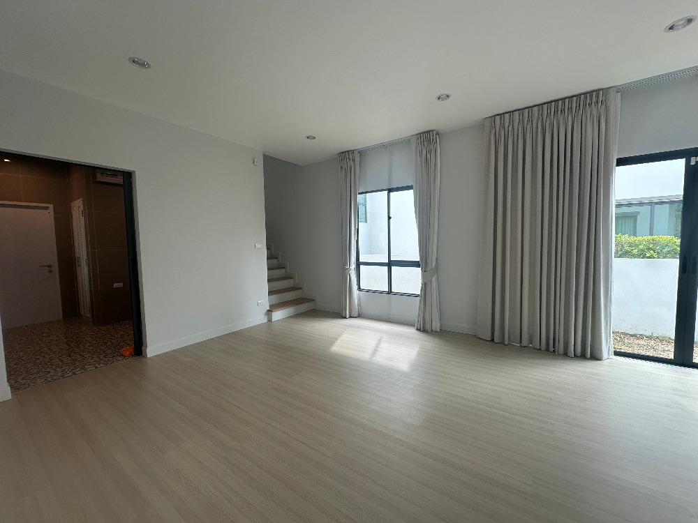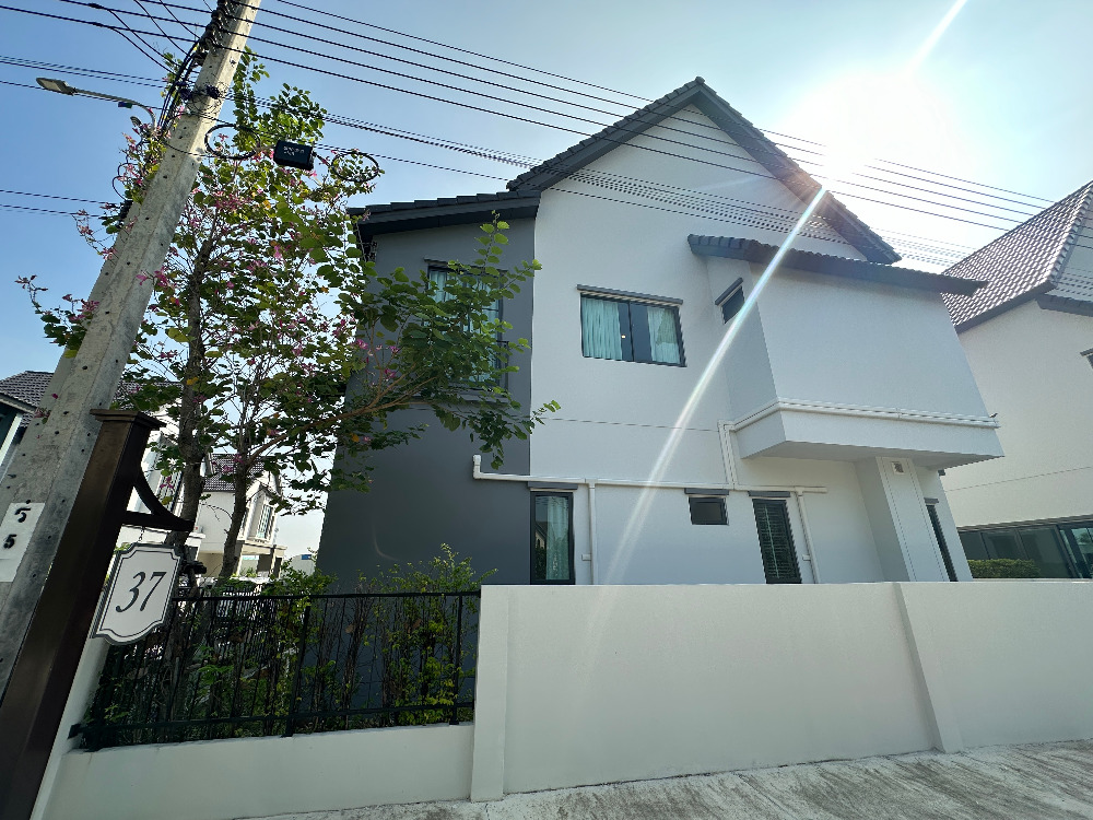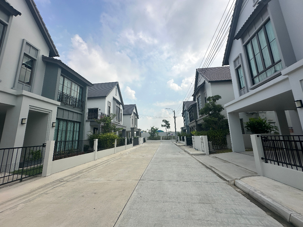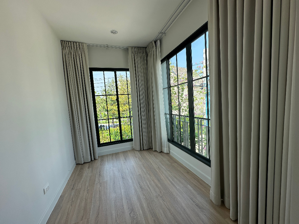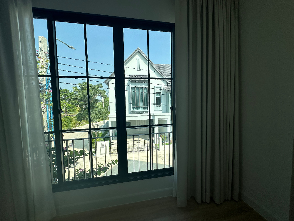 Selling price 7.2 million baht 🔥 📌 Details 2-story detached house, corner unit, Type Muguet A , area 50.7 sq m, usable area 205 sq m 4 bedrooms, 4 bathrooms (there is a bedroom for senior citizens on the 1st floor) for sale with 5 air conditioners and curtains throughout the house Parking for 2 cars, north house number. 345/393 Common fee 34 baht/square wah/month Owner bought it and never lived in it 📌 The highlight of the house is located at the beginning of the project. The bedrooms on the upper floors all have their own bathrooms. The bedroom on the ground floor is next to the bathroom. Makes it convenient to use Suitable for large families with elderly The project design is in Modern Farmhouse style, giving a country atmosphere, trees, wind, sunlight, like being at a farmhouse in Europe. The house is open, airy and comfortable, meeting the needs of modern lifestyle📌 Traveling There are 2 routes for entering and exiting the project • Route 1 : From Soi Pracha Uthit 90, turn into Soi Boonlert Phatthana on the left. There is a distance into the alley of approximately 1.2 km. • Route 2: From Pracha Uthit-Wat Khu Sang Road, turn into Soi Pracha Samakkhi and go about 2.4 km. to the project location. 📌 Nearby important places, various educational institutions • Sarasas Pracha Uthit Pittayakhan School ~ 3.9 km. • Sarasas Samutsan School ~ 4.1 km.• Sarasas Wites Suksa School ~ 4.5 km. Department Store, Super Market, Community Mall • Big C Supermarket ~ 5 km.• Lotus Pracha Uthit Market ~ 8.3 km. . Hospital • Bang Chak Hospital ~ 6.2 km. • Bang Pakok Hospital 3 ~ 9.3 km.• Bang Pakok Hospital, Samut Prakan ~ 9.5 km. • Paolo Phra Pradaeng Hospital ~ 8.6 km. Other important places • Industrial ring Suksawat side ~ 8.4 km.• Chalerm Mahanakhon Expressway, Suksawat Dan ~ 13.6 km.