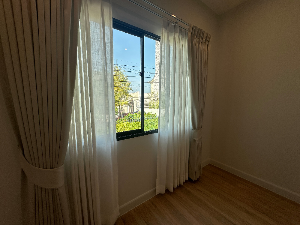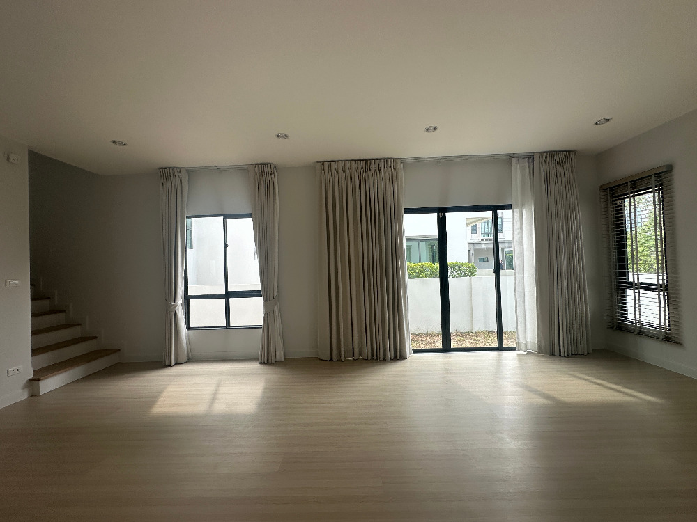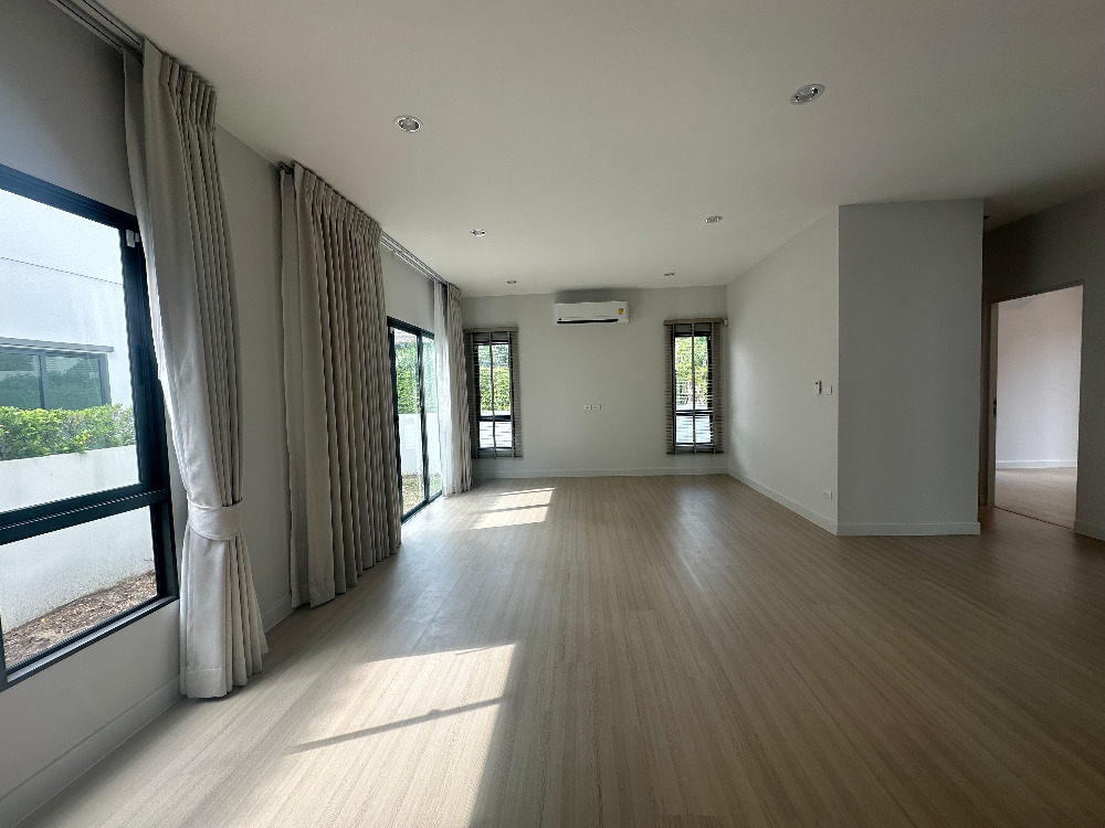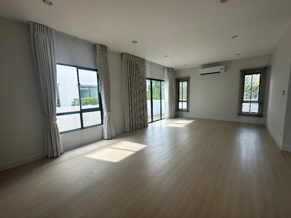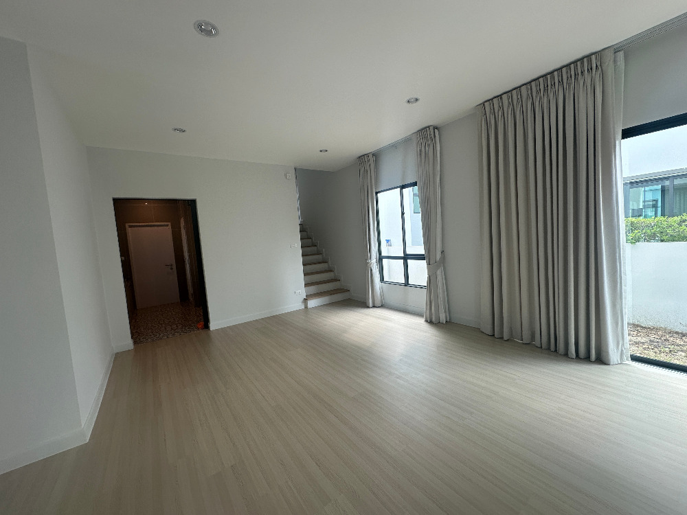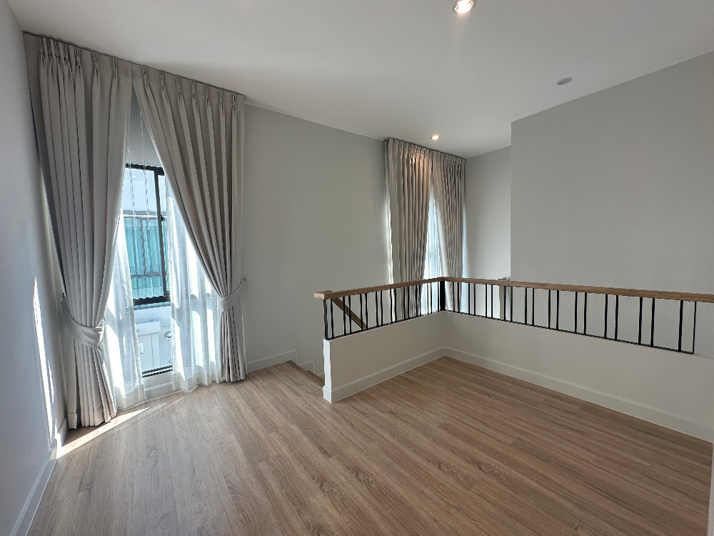 Selling price 7.2 million baht 🔥 📌 Details 2-story detached house, corner unit, Type Muguet A , area 50.7 sq m, usable area 205 sq m 4 bedrooms, 4 bathrooms (there is a bedroom for senior citizens on the 1st floor) for sale with 5 air conditioners and curtains throughout the house Parking for 2 cars, north house number. 345/393 Common fee 34 baht/square wah/month Owner bought it and never lived in it 📌 The highlight of the house is located at the beginning of the project. The bedrooms on the upper floors all have their own bathrooms. The bedroom on the ground floor is next to the bathroom. Makes it convenient to use Suitable for large families with elderly The project design is in Modern Farmhouse style, giving a country atmosphere, trees, wind, sunlight, like being at a farmhouse in Europe. The house is open, airy and comfortable, meeting the needs of modern lifestyle📌 Traveling There are 2 routes for entering and exiting the project • Route 1 : From Soi Pracha Uthit 90, turn into Soi Boonlert Phatthana on the left. There is a distance into the alley of approximately 1.2 km. • Route 2: From Pracha Uthit-Wat Khu Sang Road, turn into Soi Pracha Samakkhi and go about 2.4 km. to the project location. 📌 Nearby important places, various educational institutions • Sarasas Pracha Uthit Pittayakhan School ~ 3.9 km. • Sarasas Samutsan School ~ 4.1 km.• Sarasas Wites Suksa School ~ 4.5 km. Department Store, Super Market, Community Mall • Big C Supermarket ~ 5 km.• Lotus Pracha Uthit Market ~ 8.3 km. . Hospital • Bang Chak Hospital ~ 6.2 km. • Bang Pakok Hospital 3 ~ 9.3 km.• Bang Pakok Hospital, Samut Prakan ~ 9.5 km. • Paolo Phra Pradaeng Hospital ~ 8.6 km. Other important places • Industrial ring Suksawat side ~ 8.4 km.• Chalerm Mahanakhon Expressway, Suksawat Dan ~ 13.6 km.