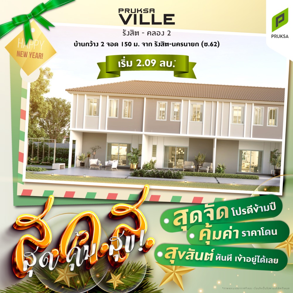 Pruksa Ville 106 Rangsit Khlong 2 New model house, 2 parking spaces, only 150. from Rangsit Road, Nakhon Nayok (Soi 62) Area size 18.1 (sq m) 3 bedrooms 2 bathrooms Price: 2.09 million baht* . To read