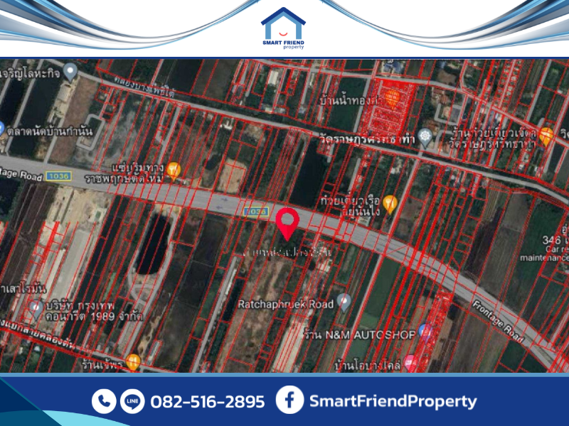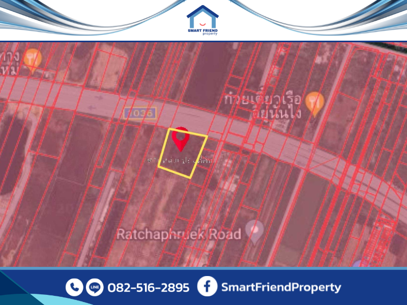 Land for sale, good location, next to PT. 1036 Road, 10 lane road, rectangular plot, cheap price, close to prosperity, convenient travel, Bang Duea Subdistrict, Mueang District, Pathum Thani Hurry and become the owner. before the price skyrockets This location is a connecting route to Kanchana Road. with Ratchaphruek Road entering and exit the city is the most convenient. Tel.: Contact number (Took Smart Friend) Line : Contact number - Land size 4-3-99 Rai - Beautiful rectangular shape - Land facing Northeast - Image of the land plot, width approximately 83 m., length 100 m. - City Plan : Pink - community - Good location, convenient travel, land next to the road (Por.Tor. 1036) 10 lens road, connecting to Kanchanaphisek Road with Ratchaphruek Road - Suitable for allocating land plots, building factories, warehouses, Showroom, Retirement Home, restaurants. Nearby places Shopping: Makro, Big C Pathum 9-10 minutes, Robinson Ratchapruek 13 minutes, Central Chaengwattana 19 minutes, Rahaeng Market 14 minutes. Hospital: Pathum Thani Hospital 9 minutes Educational institution: Laem Thong Technology College 12 minutes Others: Wat Ratsattatham 1 minute, Wat Phrai Fa 5 minutes, Subdistrict Administrative Organization Bang Duea 7 minutes, Bus Station Pathum Thani 10 minutes, Koh Kret 15 minutes, Muang Thong Thani 25 minutes. Coordinates: 14.00703147,100.46499895 https://maps.app.goo.gl/LY6AjLtvZ5shrgRy7 Selling the whole plot for only 42,000,000 baht. For more information or make an appointment to visit the land Please Contact : Took (Smart Friend) Tel . : Contact number Line : Contact number Smart Friend Property Our service for consignment - rent – sale on consignment real estate