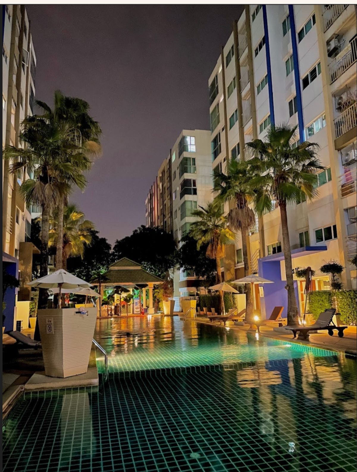 💯FLASH SALE️️🎯 Make a deposit and move in by July, 1st, get 2,400 THB off/year ️🎯 - 31-sqm Studio: Newly renovated, embodying simplicity and functionality. - Japandi-Inspired Bed: Built-in style with a quality mattress for restful nights. - Brand-New Furniture: Cozy couch with soft pillows, side table, and a Smart TV. - Built-in front load washing machine. - Efficient Storage: Wardrobe and kitchen counter with ample storage. - Compact Kitchen: Brand-new built-in counter, cooker hood, fridge, and microwave. - Japandi-Styled Bathroom: Brand-new built-in counter and storage for a minimalist touch. - Balcony with Pool View: Step outside for a serene outlook. - Digital Door Lock: Easy and secure access for peace of mind. - Swimming pool and free Parking Space: Convenience at your doorstep. - Daily Shuttle Van: Seamless commuting to and from metro stations. - In-Compound 7-11: Access everyday essentials within steps. - Coin-Operated Laundry Machines: Convenient on-site laundry facilities. - Proximity to Starbucks, Max Value, and Restaurants: Just a 5-minute journey away.