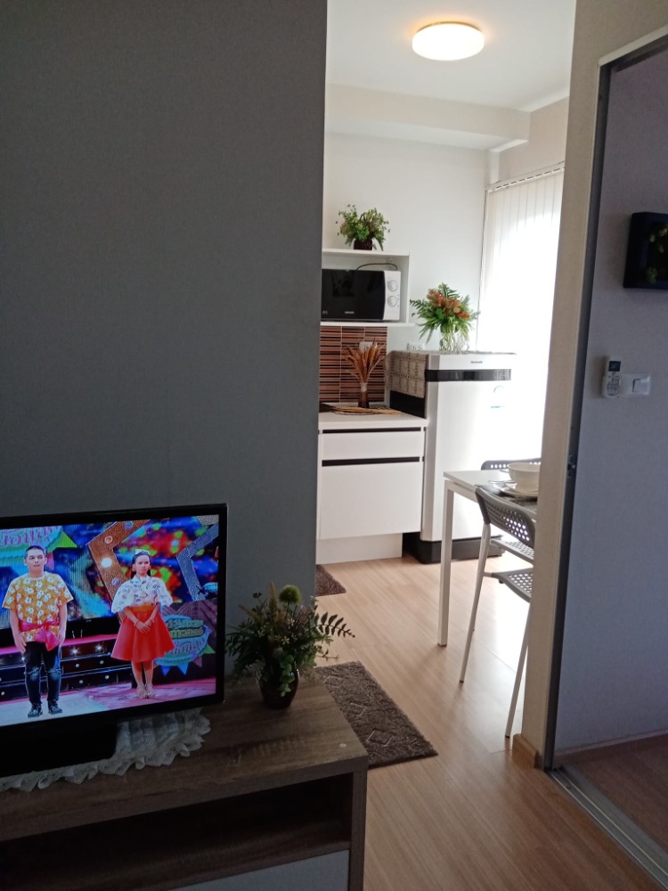 Rent PLUM CONDO BANGYAI STATION - 1 Bedroom 1 Bathroom Size 23.05 sq.m. - Building G , 3 floor. - Price 5,700 Baht / per month Contract 1 year = Pay 2 months insurance / Rent in advance 1 Month - air conditioner, TV, refrigerator, microwave, water heater Fully furnished. Facilities - Fitness - Swimming pool - Parking - 24 hour security - CCTV security system - Or through-out the key card access