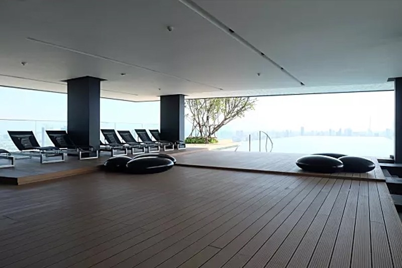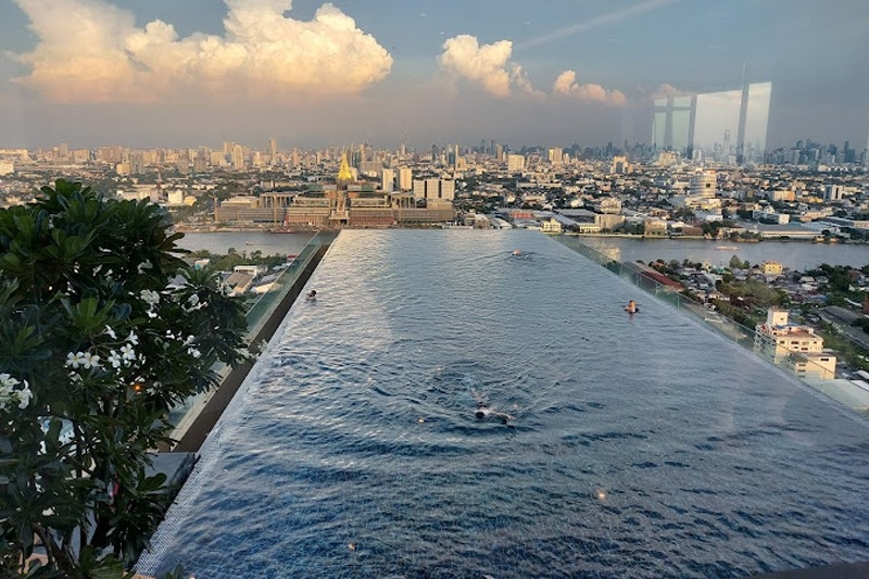 🔸 High Rise Building, 40th floor, is an area of Facilities ranging from Infinity Edge Pool, salt water system, size 12.5 x 40 meters, with views of the Chao Phraya River and Bangkok on the Phra Nakhon side.
