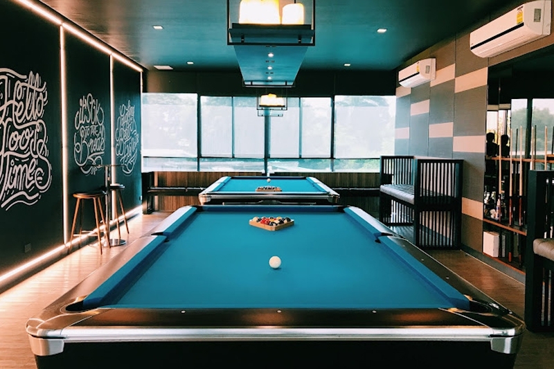When going up the stairs to go up to the 2nd floor of the Clubhouse building, there is a Meeting Room, Living Room, Golf Simulator, Yoga Room, Pool Room and Kids Room.