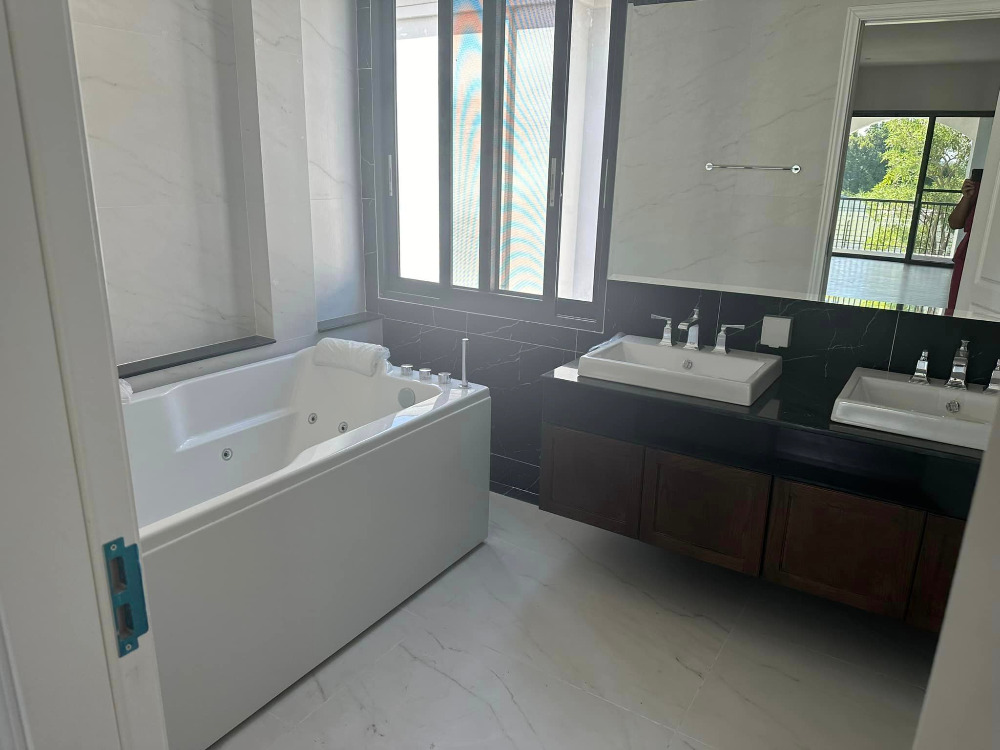 Perfect Masterpiece Rama 9 - Krungthep Kreetha Luxury single house on new Krungthep Kreetha Road (MA1041) – Area 170 square meters – House style Prima S – Usable area 423 square meters – 4 bedrooms, 5 bathrooms / 2 maids rooms + bathroom – Parking: 4 cars indoors . Selling price 41.89 million baht – Empty house ready to decorate – Double Volume in the Living area – Never lived in / The house is less than 1 year old – The front of the house faces south . Facilities – Master Club – Swimming pool / fitness / sauna /stream – Easy Pass entry-exit system – CCTV around the project – 24-hour security guard . Nearby important places – The Nine Center / Central Grand Rama 9 – Market Place Krungthep Kreetha – Wellington College International School – Brighton College Bangkok International School – Samitivej Srinakarin Hospital / Vibharam Hospital – Kanchanaphisek Expressway / Motorway ————————————————— Contact (Agent) – K. Nutty Tel: Contact number – K. Ake Tel: Contact number