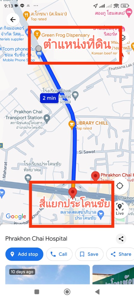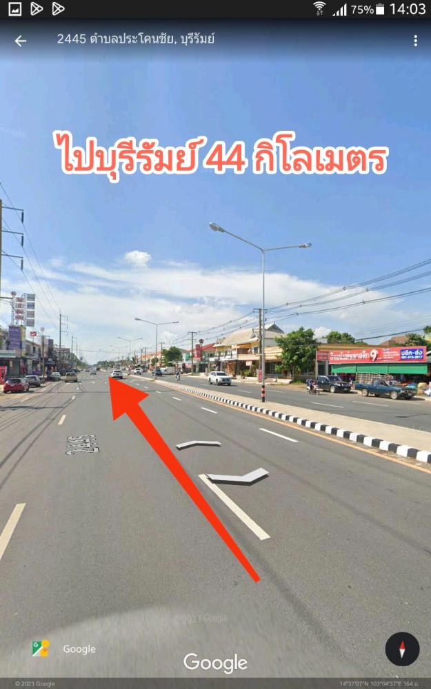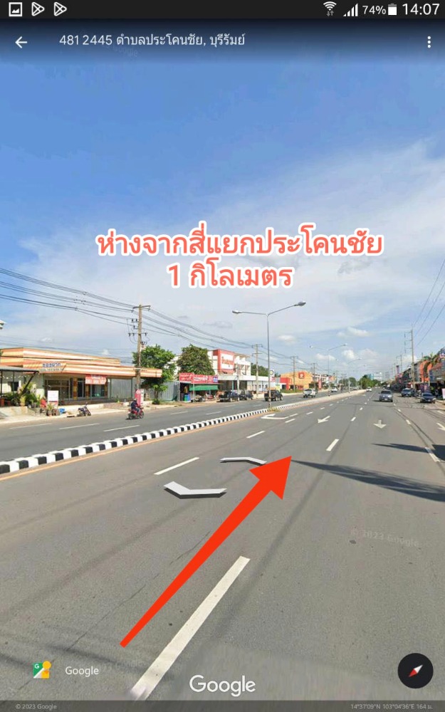 Land For Sale: Land located on the main road, Prakonchai - Buri Ram, right at the exit of Prakonchai District. Land area is 9 rai 3 ngan (approximately 3.6 acres) with a frontage of 40 meters, back wi