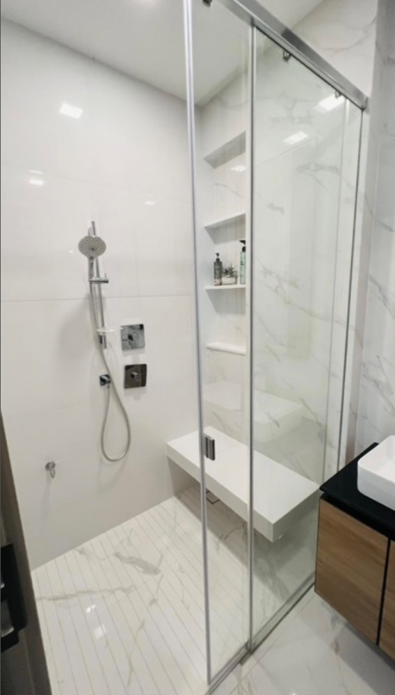 Model V1, usable area 371 sq m., land size 83 sq m. Inside the house, 4 bedrooms, 5 bathrooms, 3 parking spaces, 1 maids room, 1 maids bathroom. There is a private elevator, sauna room, Jacuzzi tub, drivers room, Magnetic Sensor, Motion Detector, Heat Detector with built-ins throughout the house. Beautifully decorated and luxurious Project details: VIVE Ekkamai-Ramindra Project It is a luxury detached house located on Soi Yothin Phatthana 3, directly connected to Pradit Manutham Road. and Kaset-Nawamin Road You can also take a shortcut to Soi Nawamin 111, connecting to Nawamin Road. Or Soi Pho Kaew (Soi Lat Phrao 101) to go to Lat Phrao Road in another way as well. As for the location along the Ramintra Expressway, there is plenty of it all densely concentrated. There are department stores, shops, and various restaurants. Open for service throughout the line. Including densely populated people as well. The atmosphere is lively, not lonely, not lonely or scary at all Utilities: Public park, large clubhouse, swimming pool, fitness (Hi-class Fitness), common garden providing shade with large trees, Key Card Access to enter and exit individual projects, Security 24 hrs., CCTV 24 hrs., others. Facilities Highlights: Modern style house that controls the direction of light as desired. Penhouse Master Bedroom, 3rd floor, convenient location in the middle of the city (Yothin Phatthana 3), courtyard style floor plan design, private elevator installed. Choose to live a unique life. Answering the needs of every aspect of life Convenient and close to nature at the same time In a private society, only 48 families Location: Soi Yothin Phatthana 3, Khlong Chan Subdistrict, Bueng Kum District, Bangkok 10230 Zone: Min Buri, Nong Chok, Lat Krabang, Bueng Kum, Ramintra, Lat Phrao Project owner: Land and Houses Public Company Limited Project area: 17-1-31 rai Project type: Single house Number of units: 48 units Construction start: 03/2018 Nearby important places: Call Contact number