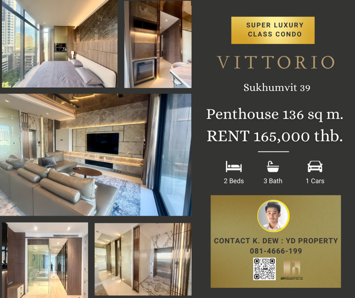 ✨ Experience Unmatched Luxury – Vittorio Sukhumvit 39 ✨ Room Details: • 2 Bedrooms | 3 Bathrooms | 136 SQ.M. • Masterpiece interior design worth over 10 million THB • Fully equipped with premium appliances, including a wine cellar • Big Garden in the Cit