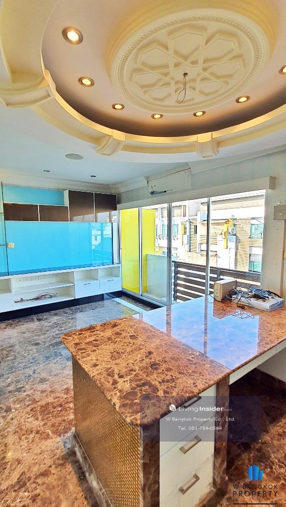 - Sell Home Office Project "BIZTOWN Lat Phrao" 2-booths, 4 stories, 11 meters wide, 520 sqm, land 56.3 sq.m., 8 private parking, President Penthouse on Fl.4, very beautifully decorated. Very good price!! - Location in the center of the city, Lat Phrao zone is very convenient. Near the yellow train, Big C, Ladprao (Ni Lat Phrao 83), only 300 meters. Biz Town Project Ladprao is on the Lat Phrao road between Soi Lat Phrao 79 and 81. - 2 booths, the room is very private. With parking in the envelope as a total of 6 cars (not including the car in front of the house) is the best position of the project. - facing the north, shady with a private lawn beside the house Can be arranged as a private garden as a corner of the staff There is no other side of the back. This is perfect. - Large work zones are divided into 7 spacious zones. Ceiling, airy, beautiful, beautiful, complete, from the floor, walls, ceilings, downlights, halogen and chandeliers. Beautiful ready - 1 general meeting room / pantry on the ground floor and 4th floor Penthouse / 9 bathrooms with built -in shower rooms In every bathroom of the 4th floor - Penthouse, 4th floor, luxurious and very private. For CEO, designed as a President Suite decorated with granite and luxury tiles. Consisting of the president's office With 2 built -in bathrooms and bathrooms with bathrooms and bathrooms / living rooms / PANTRY / and working corners for modern businesses - Elegant decoration Granito tile flooring, Wall Paper, Blames, Down Light and Halogen Luxury level for modern offices 1st floor consists of a reception counter, 2 large work covents, 2 bathrooms, the back of the house is pantry and storage room. The 2nd floor consists of a large work hall with 2 zones connecting to the U -shaped, 2 bathrooms. The 3rd floor consists of a 10-12-seat meeting room, 2 other works, divided into proportions, server, computer, 2 bathrooms. 4th floor, Penthouse SUITE consists of a large president office. With a bathroom and bathroom Very private, the bedroom with 2 built -in bathrooms, the living room with a large working zone and the Pantry corner that has all the water system. The upper view is open. The atmosphere is very good. ** Special price only 24.9 --> 22 MB Only! (Land transfer expenses Each half)