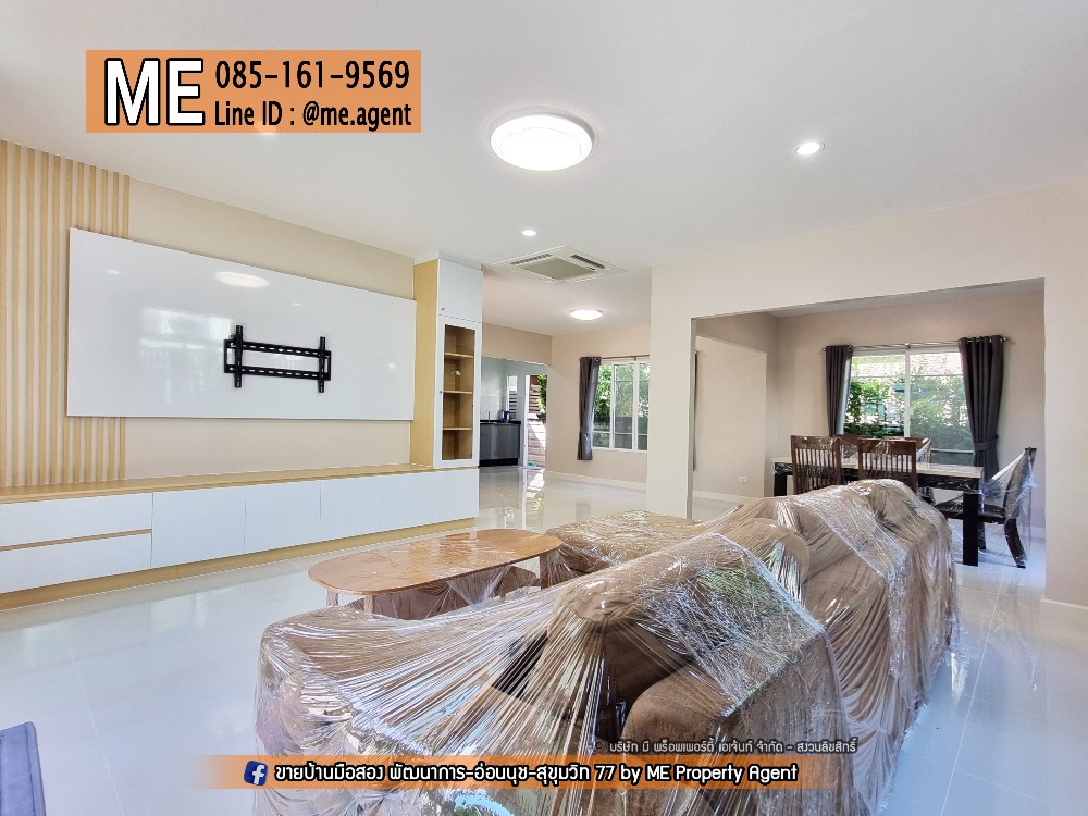 A chance! Single house for rent, Passorn Prestige Pattanakarn 38, large house plan, 210 sq m., in front of the house does not collide with anyone. With furniture, near BTS On Nut and Airport Link Hua Mak, call Contact number (RBJ13-59) .🛣️Whoever is looking for a large detached house with privacy. With a very special price It has to be after this . House details📐 Land area 59.20 sq m, usable area 210 sq m (not including parking) 🛏️ 3 bedrooms 🛁 3 bathrooms 🍽️ 1 kitchen 🛖 1 maids room + en-suite bathroom 🚗 2 parking spaces ⏱️ North direction 🛋️ with interior furniture, ready to move in, just carry your bags and move in .🛑Rent 75,000 baht / month 🛑 . If interested, contact us at ME Property Agent ☎️ Call Contact number K.Mook ☎️Call Contact number K.O LINE : @me.agent IG : mepropertyagent TIKTOK : meagent YouTube : @meagent5131 Follow and see beautiful houses on the ME page. Inbox FB: Used houses for sale. Phatthanakan-On Nut-Sukhumvit 77 by ME Property Agent .🏝️Amenities🏝️ – Swimming pool – Playground, park – Exclusive Security system with 24-hour security guards and CCTV system, closed circuit television, Key Card Access, automatic entry and exit .🏝️Nearby important places🏝️ -Seacon Square Department Store -Paradise -Bangkok Christian International School - Thai-Japanese Institute of Technology - Kasem Bundit University -Big C On Nut -Tesco Lotus #MEpropertyagent #ONEStopService #Second-hand house #Baan Phatthanakan #Baan On Nut #House ready to move in #Townhouse On Nut #Townhouse Pattanakarn #Single house ready to move in #PattanakarnHouse #PattanakarnTownhouse #OnnutHouse