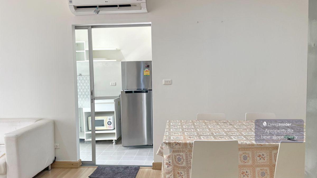 The Kith Tiwanon 2-Bedroom Condo for Rent The Kith Tiwanon 2-Bedroom Condo for Rent: Beautiful, spacious 59 sq m. Rental Conditions: - 1-year lease agreement - 2-month security deposit + first month of move-in required Building A9, 7th floor, near the swimming pool and fitness center - 2 bedrooms, 1 living room, 1 kitchen, 1 bathroom, 2 balconies, swimming pool view - Beautifully decorated, fully furnished with appliances - Beautiful white furniture, fully equipped with built-in kitchen, 2 5-foot beds (1 bed shown, additional beds can be arranged if needed), TV stand, 2 wardrobes, shelves, dining table, sofa - 2 air conditioners (in the bedroom and living room) - High-quality 2-door refrigerator - Water heater - Microwave - White sofa - High-quality double-layer curtains - Southwest-facing balcony The project features a clubhouse, fitness center, swimming pool, sauna, and 24-hour security with keycard access. CCTV cameras are installed on every floor, and a security guard and housekeeper are on hand to provide convenient services. Free parking is available, and there's a laundry, beauty salon, and a shabu restaurant. There's also a 7-Eleven in front of the project. Convenient transportation: The condo is located opposite Suankularb Nonthaburi School and near Krungthai Hospital. The condominium is surrounded by shopping malls like Big C, Lotus, HomePro, and Central Chaengwattana. For more information, please visit https://lin.ee/CmT9oRl. Copy the link and paste it into your Line account. Add us as a friend. Line: @aproperty Real estate listings, sales, rentals, and procurement. https://www.aproperty.biz/ https://www.facebook.com/Aproperty.Biz 02C The Kith ติ ENJOY
