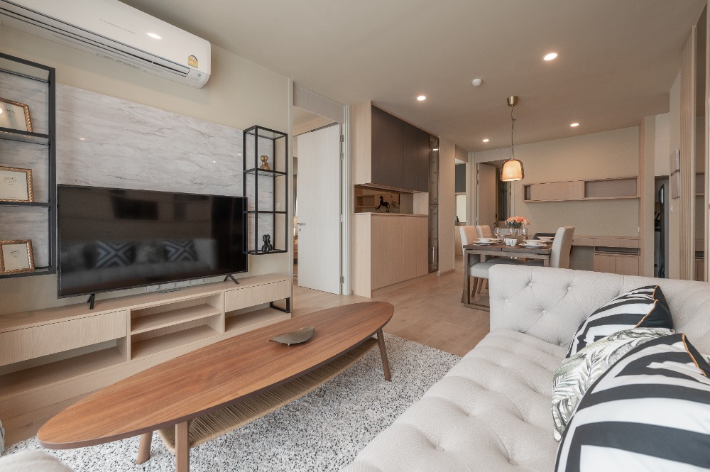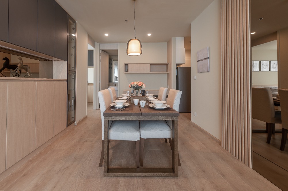 Noble Recole Sukhumvit 19 2 bedrooms, 2 bathrooms, 19th floor size 68.17 sq m. 60,000 baht/month (1 year contract) Decorated room, ready to move in. Complete furniture and electrical appliances: refri