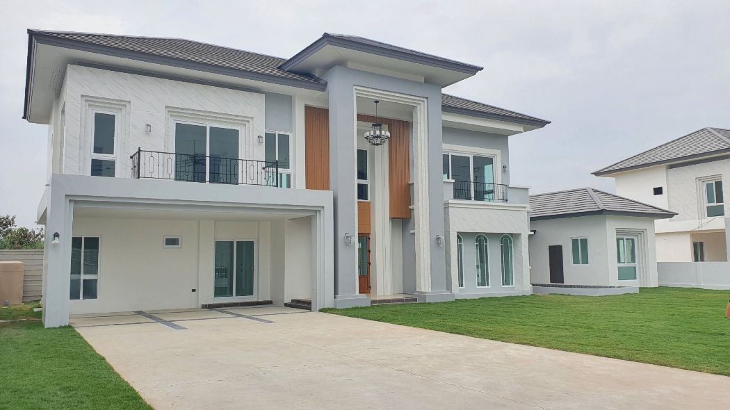 For sale, large, luxurious detached house in the Villares Rama 2 - Ekachai project, 436 sq m. 208.6 sq m ::Highlights:: 1. Modern Luxury style, simple and elegant, full of quality. Emphasis on privacy and security according to the concept of Living Redefined 2. The largest house in the project With private swimming pool The front yard is spacious. Parking for up to 9 cars underground wiring 3.TypeA+ there are only 4 houses out of 91 houses in the project 4.New houses Never lived in 5. Selling for less than houses in newly built projects ::Details:: - Size 208.6 sq m. - Area 436 sq m. - Type 4 bedrooms, 5 bathrooms - Number of 2 floors ::Project details:: - Project name: Villares Rama 2 - Ekachai 1.Grand Main Gate, entrance arch decorated in a large luxury style 2.Entity Club House, a distinctively designed club house with common activity areas to support every lifestyle. 3.Charactristic Co-Working Space, a space for doing joint activities with a unique design. 4.Charming Courtyard. Relax with a shady common area, a large courtyard 5.Cozy Strip Park, lake atmosphere, common area (outside the allocated area) :: Nearby places :: Central Mahachai Lotus Samut Sakhon, Lotus Mahachai, Big C Mahachai, Makro Samut Sakhon, Portosino, Mahachai Hospital, Ekachai Hospital Location: http://maps.google.com/maps?q=13.57846,100.3138 Price: 32,900,000 baht If interested, contact: Amnuay Sriyota Contact number Line: Contact number Dedicated, sincere, transparent. Every step