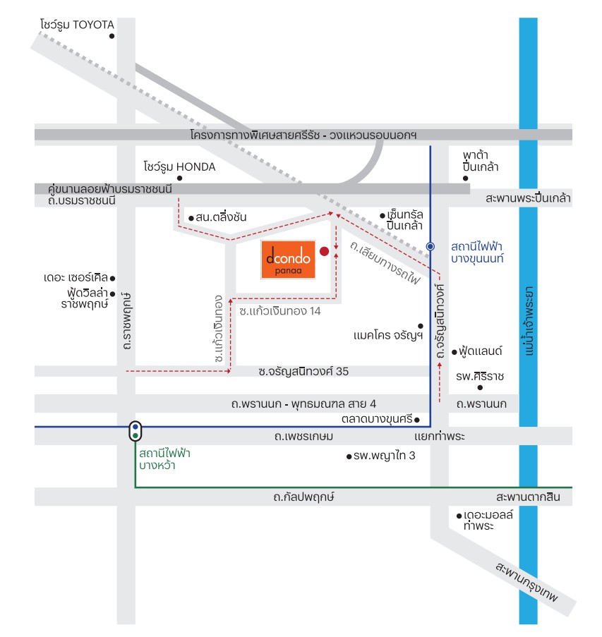 DCondo Panaa by Sansiri, new room, fully furnished, ready to move in. Price includes common fees Size 27 sq m 8th floor, Building A - Fully furnished - Complete electrical appliances Price 10,000 baht Deposit 2 months, advance 1 month Minimum contract 1 year--------------------------------------------- ----------- Facilities - Lobby - Mailbox - Cheerful Garden - Recreation Area- 25 meter long swimming pool - Pool Terrace - Fitness - Co-Working Space - Yoga Lawn - Sansiri Backyard - Shutter Service -Deliver at the BTS station - Kay Card Access system- CCTV system - 24-hour security system --------------------------- ----------------------------- Nearby places- Lotuss Pinklao - Central Plaza Pinklao - Makro Charansanitwong - Food Villa Ratchaphruek - The Circle Ratchapruek - Major Pinklao - Kensington International Kindergarten - Thammasat University Tha Phrachan - Silpakorn University - Ploen Phatthana School - Thonburi Hospital - Chao Phraya Hospital - Eye, Ear, Nose and Throat Hospital