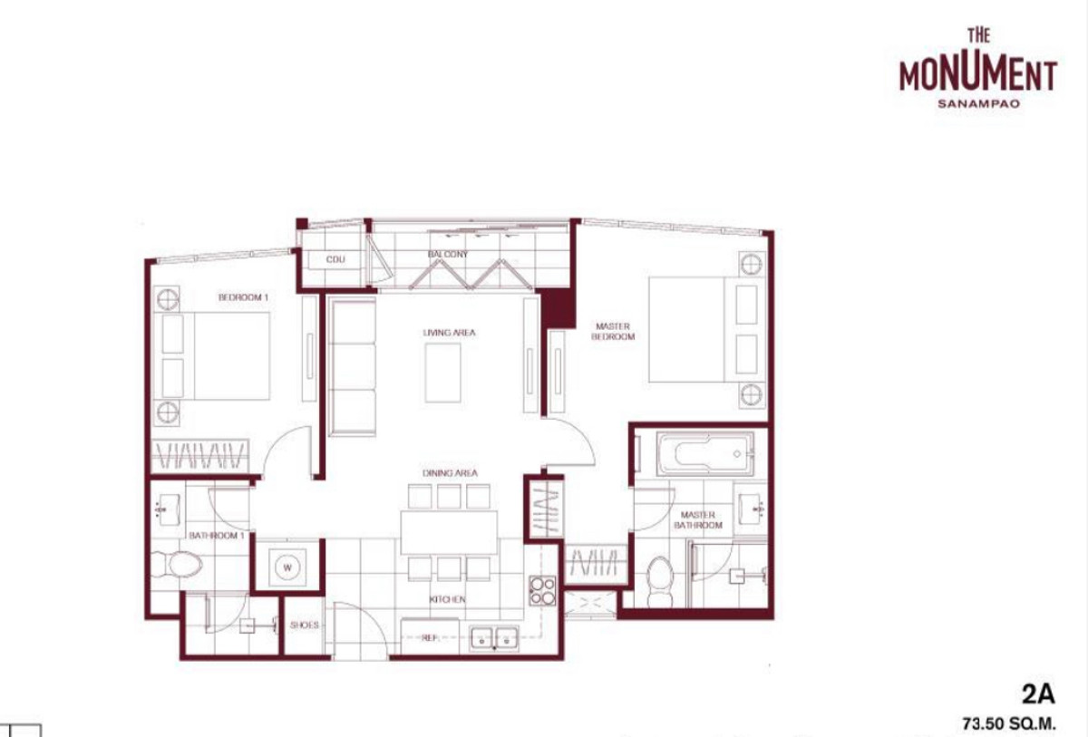 🔥 For rent. The Monument Sanampao 2 Bedrooms 2 Bathrooms, 73.75 Sq.M., Fully Furnished 🔥 Only 65,000 Baht/Month