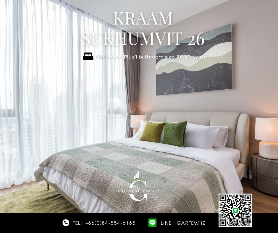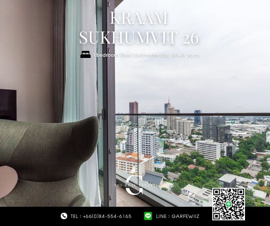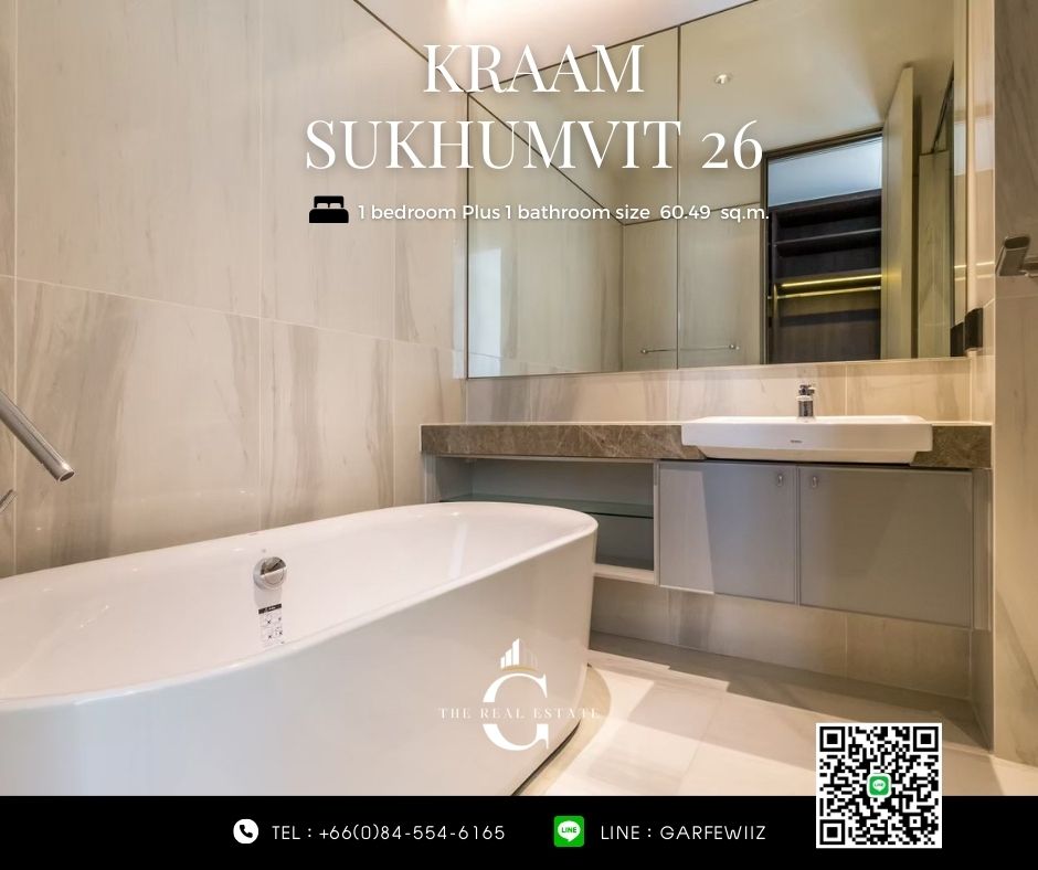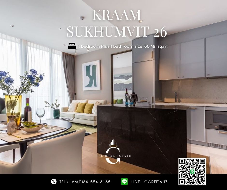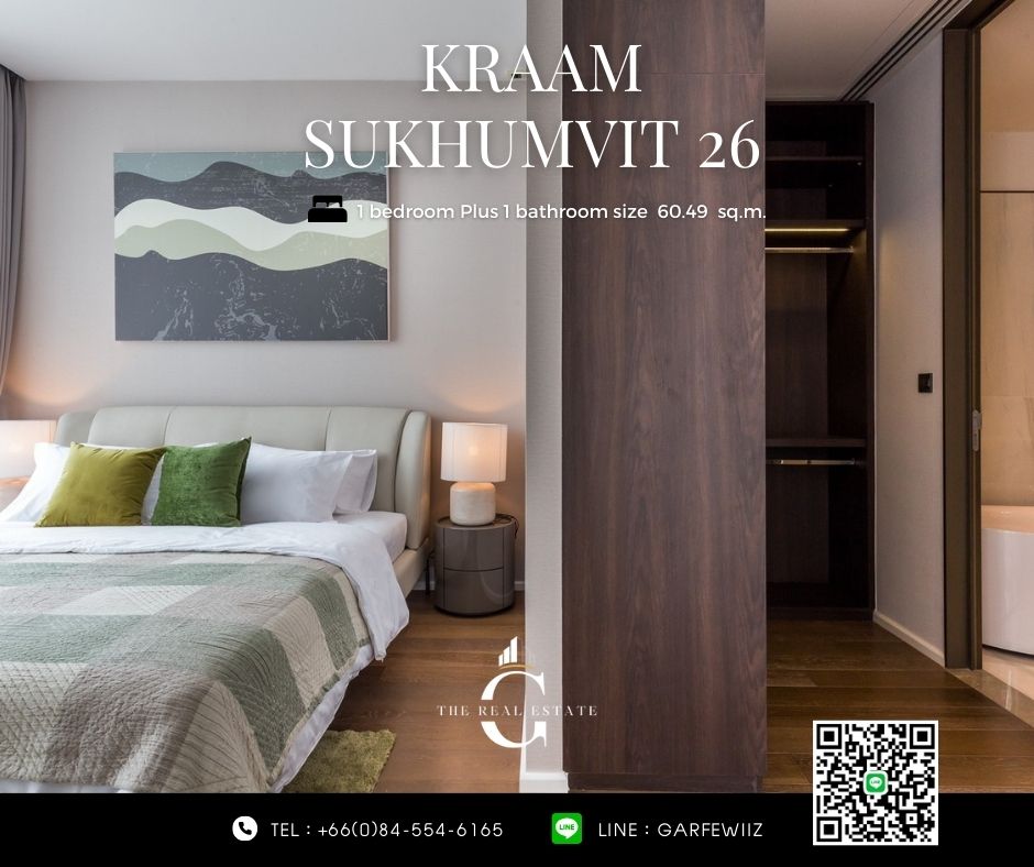 KRAAM Sukhumvit 26 KRAAM Sukhumvit 26 FOR SALE 1 bedroom size 60.49 sq.m. near BTS Phromphong ONLY 22 MB 🚝 BTS Phromphong/MRT Sukhumvit Details: - 1 bedroom, 1 bathroom - Size 60.49 sq.m. - 20th floor