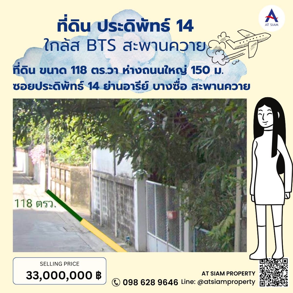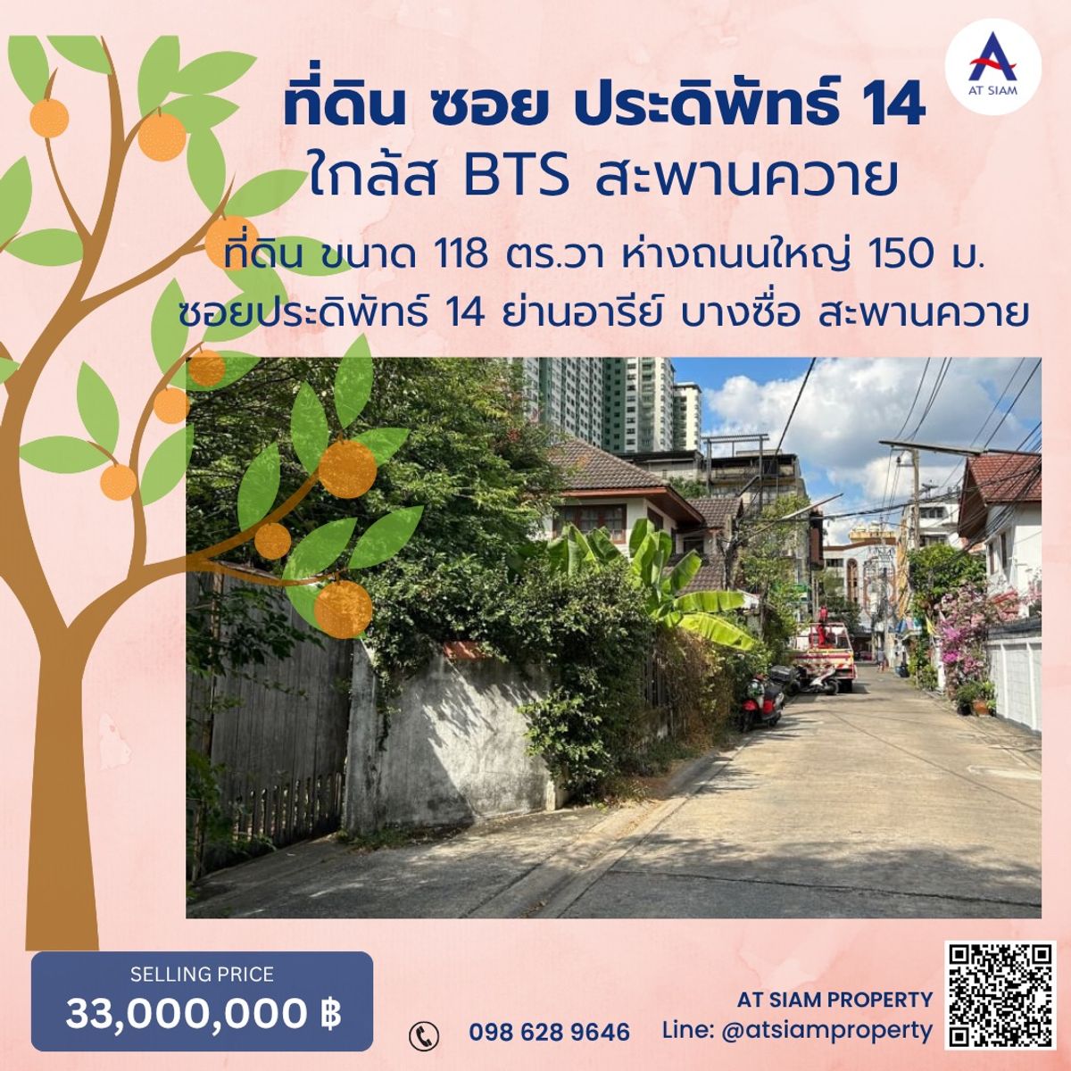 Land for sale in Pradiphat, Ari, Bang Sue, Saphan Khwai Coordinates: Soi Pradiphat - through Soi Phahon Yothin Land for sale in Pradiphat, Ari, Bang Sue, Saphan Khwai, Coordinates: Soi Pradiphat - through Soi Phahon Yothin Location: Soi Pradiphat, Samsen Nai Subdistrict, Phaya Thai District, Bangkok 10400 Urgent sale, land with old house in Pradiphat, size 118 sq.w. **Starting price 33,000,000.- Walk only 1-2 minutes from the entrance of the alley on Pradiphat Road, 150 meters to the land Suitable for investment, building a residence, mansion, office, townhouse, apartment, restaurant, small hotel Selling price 280,000 baht per square wah ▪️900 meters to BTS Saphan Khwai ▪️800 meters from Saphan Khwai intersection ▪️Near the entrance-exit of Rama 6 Expressway ▪️Bang Sue Central Railway Station ▪️Just 5 minutes drive to Or Tor Kor Market ▪️Rewadee School ▪️Samsen School ▪️Near Big C Saphan Khwai ▪️Paolo Hospital ▪️Vimut Hospital 📲 Contact At Siam Property 👉🏻Call: Contact number 👉🏻Line: @atsiamproperty (https://lin.ee/i6VGYrL) . https://linktr.ee/atsiamproperty #landforsale #vacantland #landforsale #landforsubdivision #landforproject #suitableforsubdivision #wideland #land