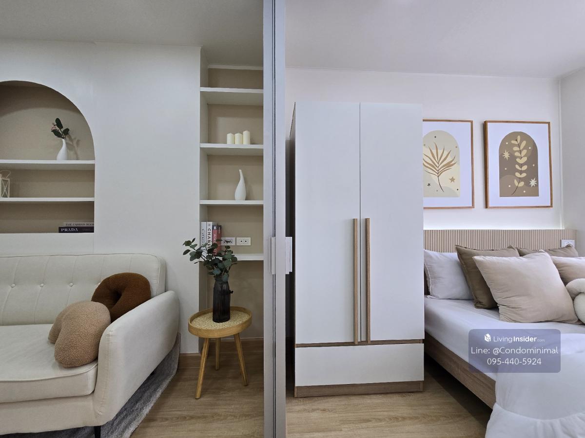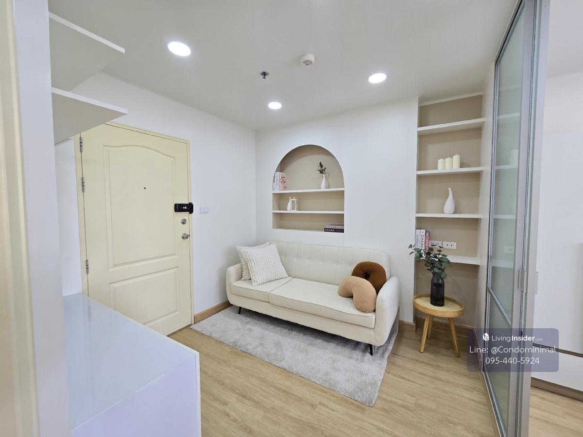 🩷Minimal MiniJai🩷 Ready to move in immediately ✅ Installment only 5,XXX baht per month Lumpini Ramintra-Nawamin (km.😎 •Building A, 4th floor, open view •Room size 25 sq m, 1 bedroom type ✅Great value furniture and electrical appliances > Change the floor!! SPC type, water does not swell on the floor. > Fully furnished, great value, including built-in wardrobes. Built-in TV shelf Bed and mattress, sofa, kitchen counter > Beautiful room, exactly as shown in the picture!!! Give it all, dont take it back. 🎉 #MRT Ramindra Km.8 #Near Fashion Island Mall ╔═════🏠-🏠═════╗ FB: Condo Minimal ✅️ Line: @condominimal ☎️Tel : 0 9 5 - 4 4 0 5 9 2 4 ╚══════🌟-🌟═════╝