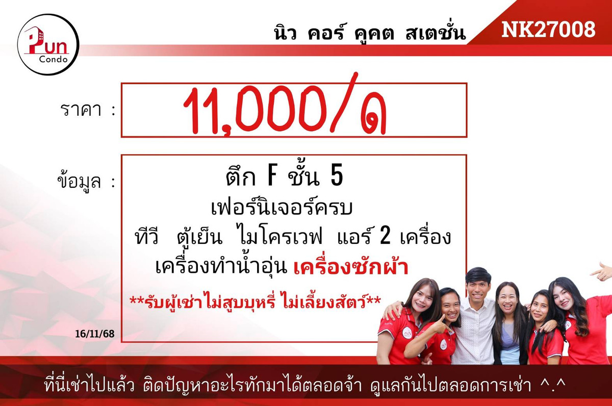 🔥Good location project, new room, unpacked🔥 #For rent New Kor Khu Khot Station [Nc27001] (Ready to move in 20. Mar. 24) New room ✨Furniture - complete set of electrical appliances. 🔥Digital door lock near BTS Khu Khot station 🚆 Building D, 1st floor 💰Rent 8,500฿/month 🤎Electrical appliances - furniture as in the picture 🤎First payment -1 month rent in advance -2 months security deposit *Rent includes common fees —————————————————————— 💌Please contact Condo for rent in Rangsit area☎️: Contact number 🛎️Line ID: @pun-condo(with@) Click ➡️ https://line.me/R/ti/p/@pun -condo 🛎️inbox ➡️ https://m.me/theExcels 🛎️New Course Station —> https://www.punproperty.com/ ——————————————————————— #New Court Station Condo #Lam Luk Ka Khlong 2 #NueCrossKhuKhotStation #nuncrosskhukho #NueCrossKhuKhot #Puncondo
