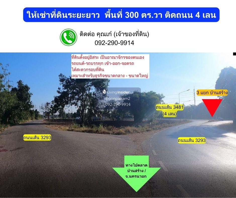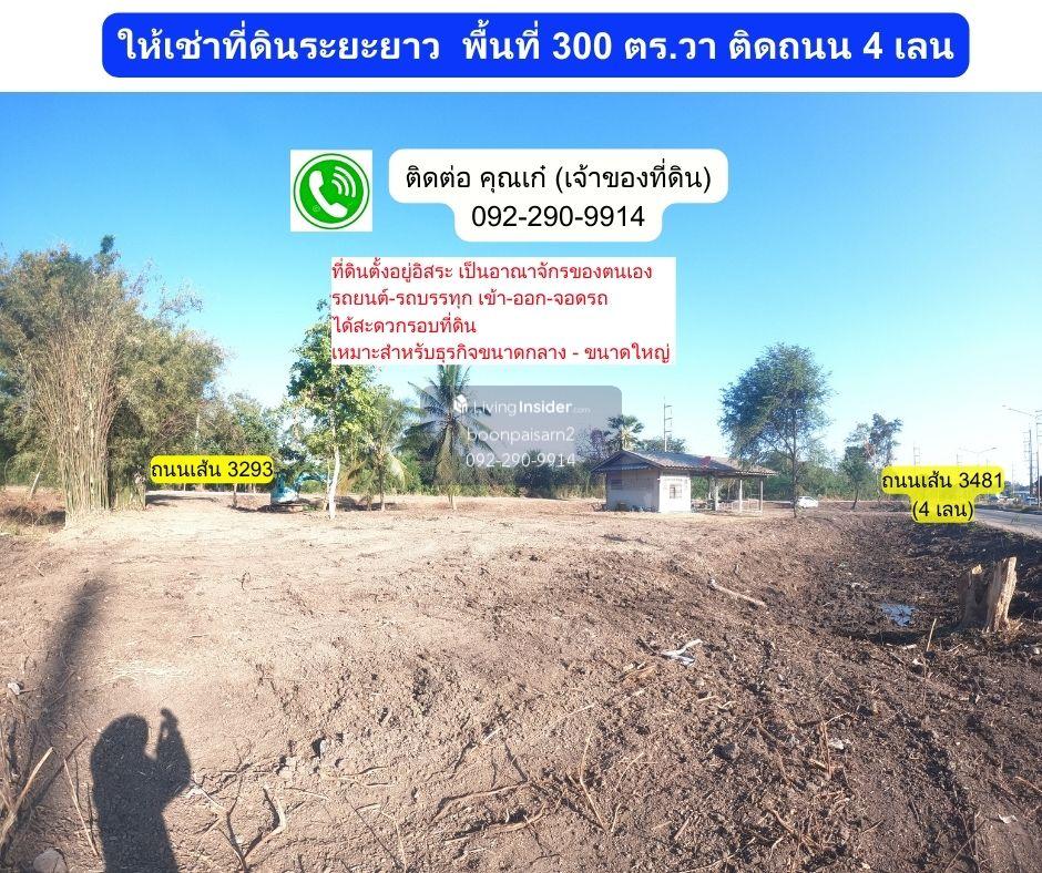1. Long-term land rental There is electricity + tap water. Completed 2. The land is in the middle of an island. The land is surrounded by 2 roads, Road 3481 and Road 3293, including an irrigation dike. Make the land independent Not attached to houses or other buildings. Its its own kingdom 3. The land is suitable for doing medium-large businesses. Because it is in the center of the community + next to 3 red light intersections, there are cars passing both inbound and outbound all the time. And small/large vehicles can enter the land easily. There is a parking area on the roadside. 4. Land next to the main road 3481 which is under "Project to construct a road at the intersection of National Highway No. 3452-Ban Sang Intersection Ban Sang District Prachinburi Province Constructed as a 4-lane road with an island in the middle and installed electric lighting in the community area. There is a 4-lane road in front of the land. The operation has been completed. 5. Near community areas / important places such as schools, police stations, hospitals. 6. Ample parking space. Can be supported from motorcycles Until trucks and trailers 7. Road 3076 (connecting from the main road 3481 to go to Nakhon Nayok Province) does not allow trucks with 6 wheels or more to pass (the road is narrow and there are cars parked along the sidewalk on both sides), so cars and trucks avoid using the road. Line 3293 (adjacent to the land) connected from the main road 3481 which is a 3 red light intersection, so there are cars passing by all the time. 8. The land is located at 3 red light intersections (Road 3293-3481), so both inbound and outbound vehicles from Prachinburi can enter the land easily. On average, approximately 400 cars drive through the land in 1 hour (between 5-6 p.m.) 9. Wat Mun Lek has a bridge across the Bang Pakong River from the temple to Road 3481, allowing people in the community around Wat Mun Lek (Moo 5) to be able to quickly reach the land by motorbike.