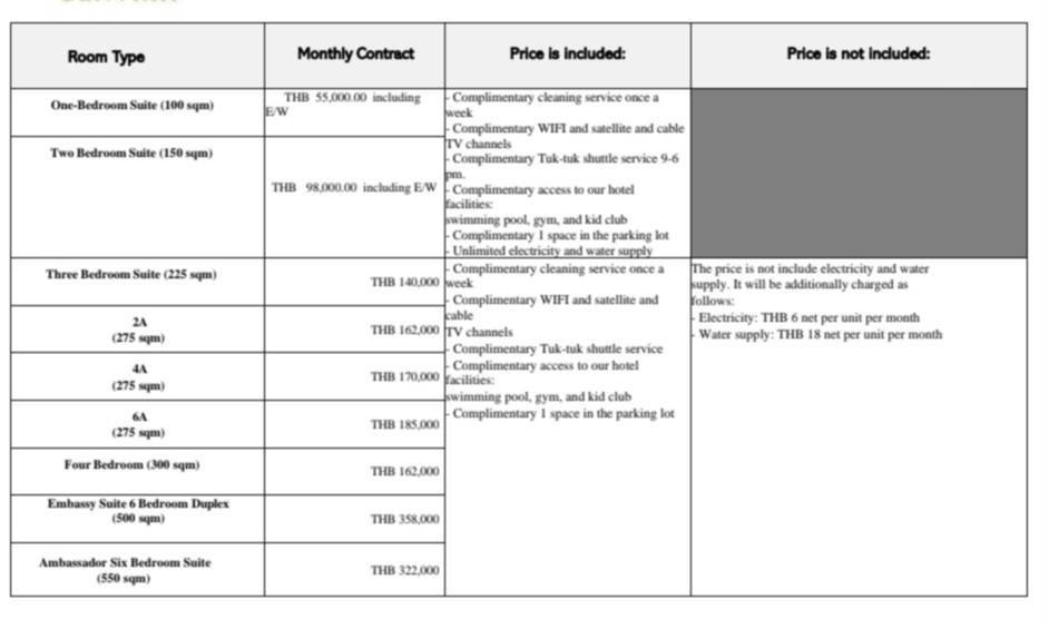 Service apartment in Tonson for rent 225 sqm 3beds 3baths 140,000 per month