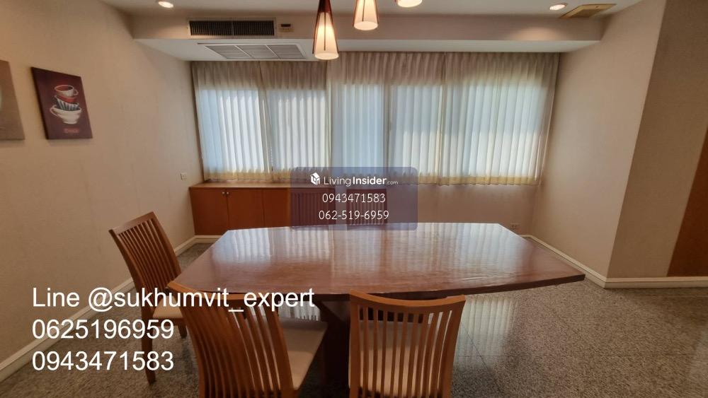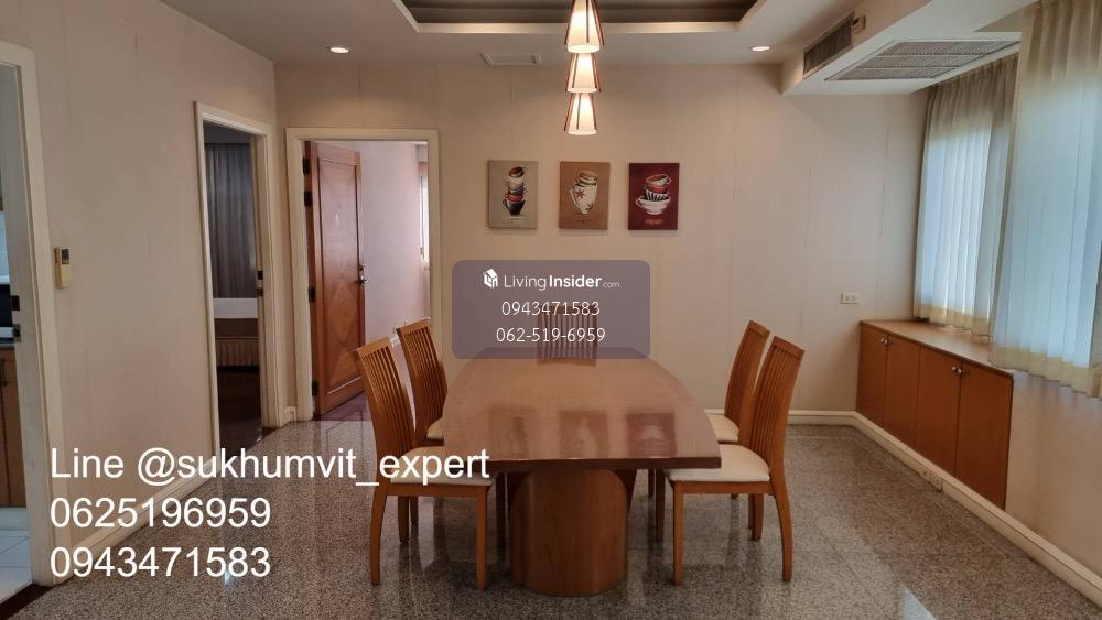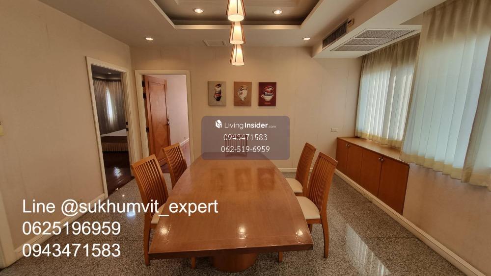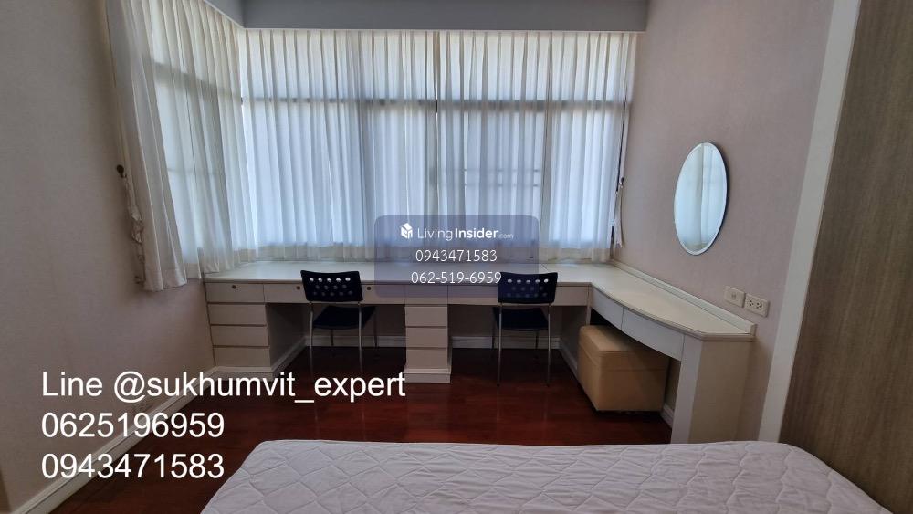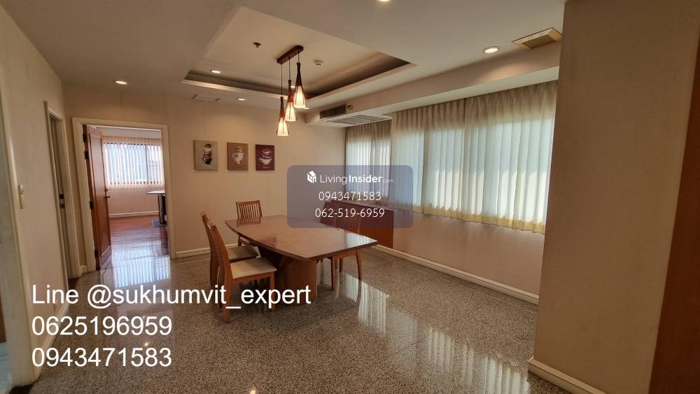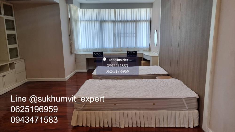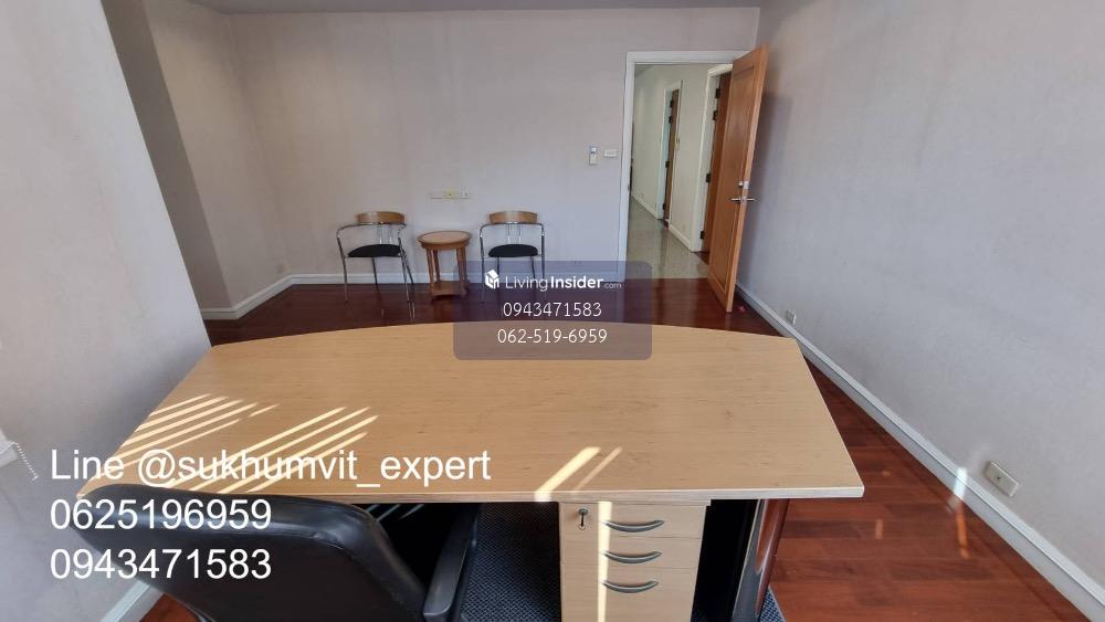 3 Bedrooms Apartment 1 Working room 1 Seperated maid room 3 Bathrooms Can change working room function (from 3 to 4 bedrooms) Functional area 300 sq. m. Water 30 Baht/unit Electricity 7 Baht/unit 1 Car parking Minimum period 1 month Common area Swimming pool Fitness Sauna Kids room Line @sukhumvit_expert Contact number Tow Contact number Tonn