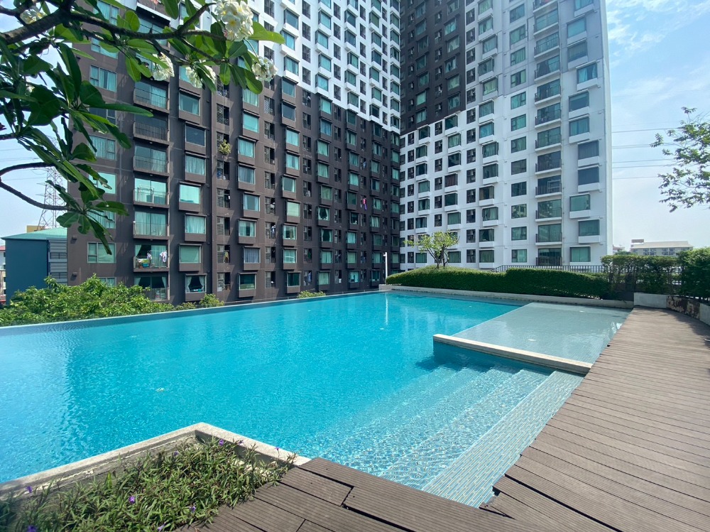 Condo for sale Fuse Mobius Ramkhamhaeng close to Ramkhamhaeng BTS station only 500 meters, almost next to the entrance of Soi Ramkhamhaeng 3/1, Ramkhamhaeng Road, in front of the condo there is 7-11 near the condo. Land Hua Mak about 900 meters, near The Mall Ramkhamhaeng about 10 minutes, near the Ramkhamhaeng Expressway entrance and exit point about 5 minutes Facilities within the project include a parking building, swimming pool, fitness room, multi-purpose room, garden, and 24-hour security system Building B, 2nd floor, size 38 square meters, 1 bedroom, 1 living room, 1 bathroom, complete with furniture and electrical appliances, ready to move in Price 2,850,000 baht If interested, contact Khun Koi Tel/Line: Contact number
