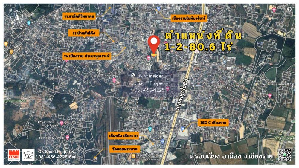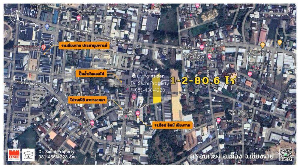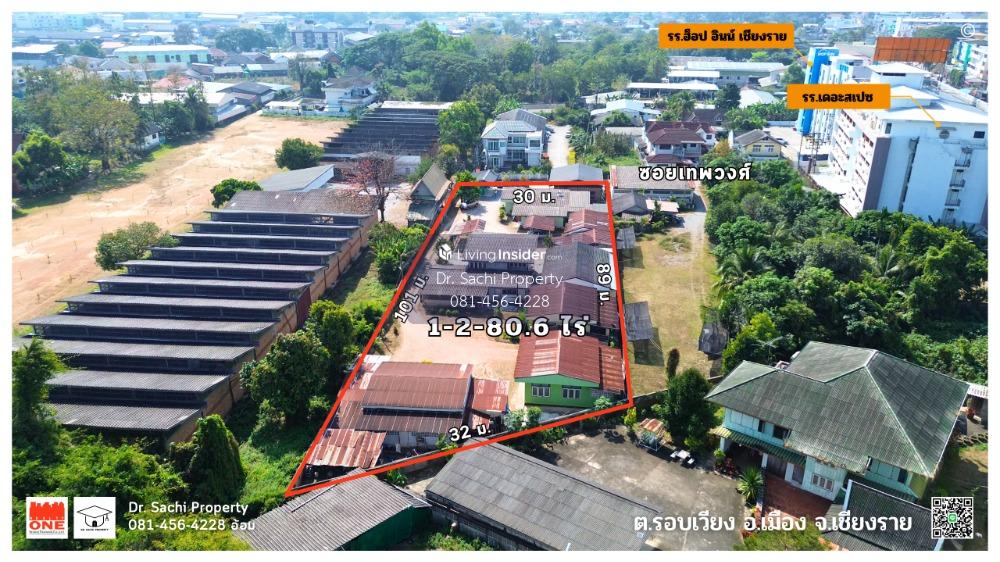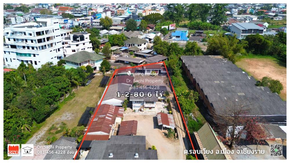 Property ID : M08232 Beautiful land in a good location, in the heart of Chiang Rai, near Central Chiang Rai, only 1.5 km. (No flooding) - 2 plots of land, area 1 rai 2 ngan 80.6 square wa (680.6 sq.wa) - Land with frontage 30 m., depth 101 m. approximately - The land faces south, next to a public road - Land next to a 30 m. long concrete road, 4 m. wide road - Buildings on the land: 10 single-story houses (20 bedrooms, 10 bathrooms) - 5 air conditioners - 4-car garage ----------------------------------------------------------------- : : Features : : - Very good location, in a community, in the heart of Chiang Rai - On a public road, convenient transportation Near Phahonyothin Road - Good atmosphere, quiet, not crowded - Suitable for a residence, small hotel, dormitory ----------------------------------------------------------------- Location : : Soi Thepphawong, Tambon Rob Wiang, Mueang Chiang Rai District, Chiang Rai Province Google Map : : https://maps.app.goo.gl/FUVbAsmLfkgnFa7u6 ----------------------------------------------------------------- : : Nearby landmarks : : - Central Chiang Rai - Chiang Rai Clock Tower - Chiang Rai Night Bazaar - Talad Lan Muang, Chiang Rai - Big C Chiang Rai 1 - HomePro Chiang Rai - Dohome Chiang Rai branch - Global House Chiang Rai - Thai Watsadu Chiang Rai - Samakkhi Witthayakhom School - Ban San Khong School (Chiang Rai Charoen Rat) - Chiang Rai Technical College - Chiang Rai Commercial Vocational College - Chiang Rai Provincial Hall - Chiang Rai Provincial Court - Chiang Rai Prachanukroh Hospital - Overbrook Hospital - Mengrai Maharat Camp Hospital - Kesomras Sriburin Hospital ----------------------------------------------------------------- Selling price : : 55,000,000 baht (80,812 baht/sq wa.) (Transfer expenses Half each) ----------------------------------------------------------------- : : For more information, contact : : Ms. Chatsachee Chatpapamon (Aom) (affiliated with the Thai Real Estate Brokers Association) Tel : Contact number LINE ID : dr.sachiproperty LINE OA : @dr.sachiproperty Facebook : Dr. Sachi Property