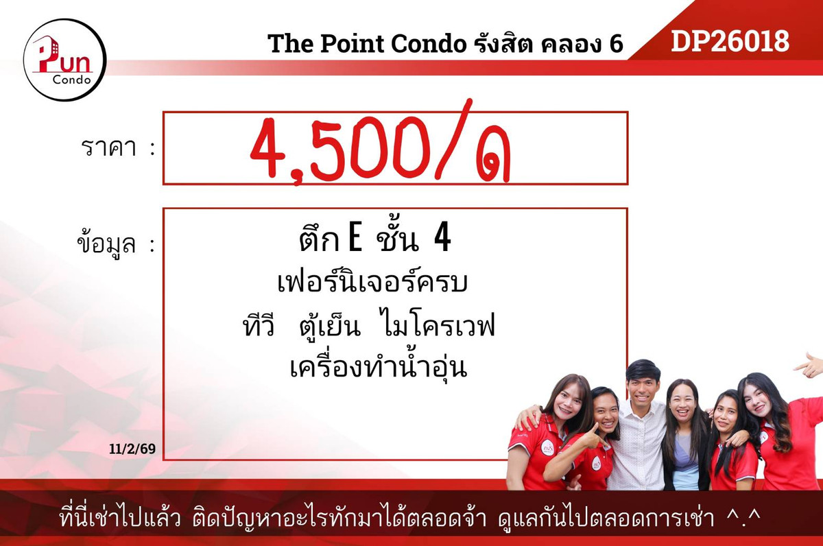 🔴#ThePoint Rangsit Khlong 6 near RMUTT, beautiful condo, very cheap price, fully furnished, ready to move in. Hurry and reserve. Come fast, go fast #Condo Khlong 6 for rent 🔴 Building D1, 1st floor [Dp26062] 💰Rent 5,000฿/month Size 26 sq m. 🔰Electrical appliances - furniture 🔰Fully furnished 🔰Water heater 🔰First payment - 1 month advance rent -2 months security deposit *Rent includes common fees. ——————————————————————— ✅ There are many more rooms** 🛎️Line ID: @pun-condo(with@) 🛎️inbox ➡️ https://m.me/thepointklong6 ☎️: Contact number 🛎️There are many more rooms. Click the link to see more rooms. https://www.punproperty.com/-thepoint ⭐️TikTok : Contact email 🎬Youtube : https://youtube.com/@puncondo5896 ——————————————————————— #thepointcondo Khlong 6 for rent #The Point Condo Rangsit Khlong 6 for rent #Rent thepointcondo Rangsit Khlong 6 #Condo for rent thepointcondo Khlong 6 #The Point Condo Rangsit Khlong 6 for rent #Condo Khlong 6 for rent