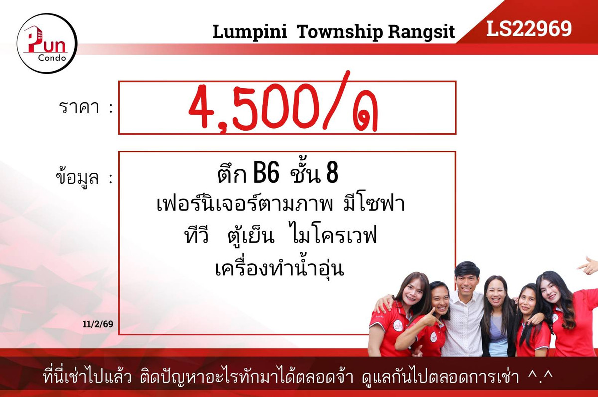 #Condo for rent Lumpini Klong 1, the room is on the north side, decorated in a controlled tone Near Future, convenient transportation 🚕Bangkok University students have a shuttle to the front of the university Building A8, 6th floor, size 22 sq m. [Ls22302b] ⚡️Rental fee 5,000฿ / month ⚡️Fully furnished ⚡️TV, refrigerator, microwave, water heater ⚡️First payment -1 month advance rent -2 month security deposit *Rental fee includes common fee ——————————————————————————— ✅ There are many more rooms** 🛎️Line ID: @pun-condo (with @) 🛎️Inbox ➡️ https://m.me/lumpinitownship ☎️: Contact number 🛎️ There are many more rooms, click the link to see more rooms —> https://www.punproperty.com/-lumpini ⭐️TikTok: Contact email 📸instagram.com/puncondo.buy.sell.rent 🎬Youtube: https://youtube.com/@puncondo5896 ——————————————————————— #Condo near Future #Rent a condo near Rangsit #Rent a condo Rangsit #Rent a condo lumpinitownship #Rent a condo Lumpini Khlong 1 #Beautiful and cheap condo #Puncondo #Puncondo #agent #Condo for rent in Rangsit #Investment #Real estate agent