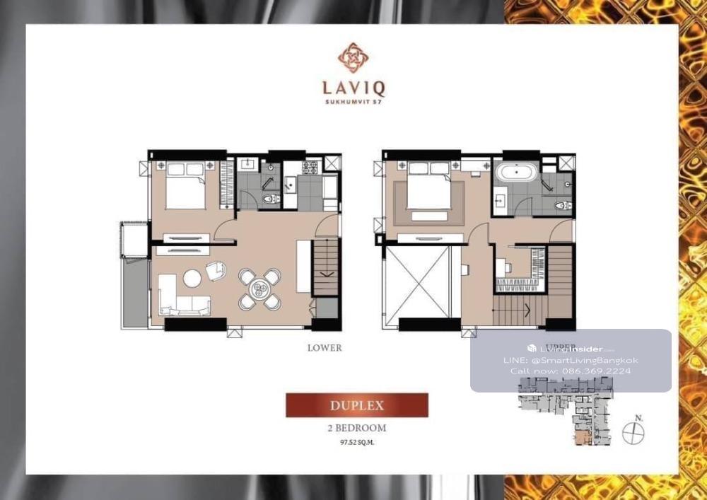 🏠Laviq Sukhumvit 57 📌Code: 275200 💰Rent: 130,000 Baht 💰Sell: 30,000,000 Baht 🛌Bedroom: 2 Duplex 🛀Bathroom: 2 📏Size: 97 sq.m 🚊Location: BTS Thonglor (200 meters) Contact Us Today to experience a new st