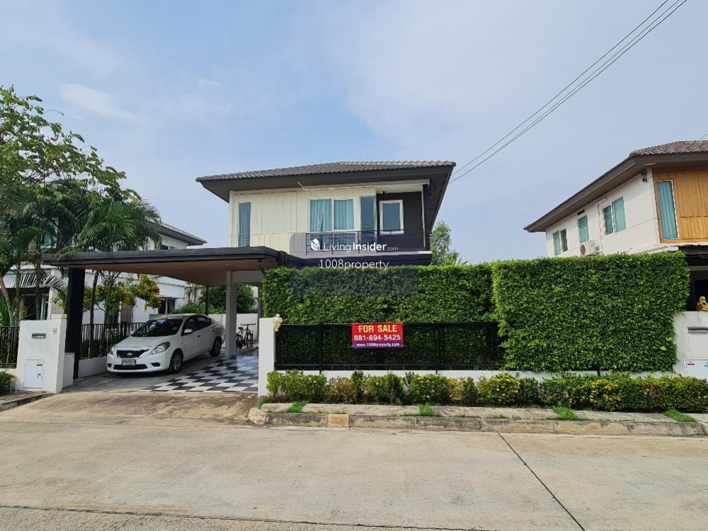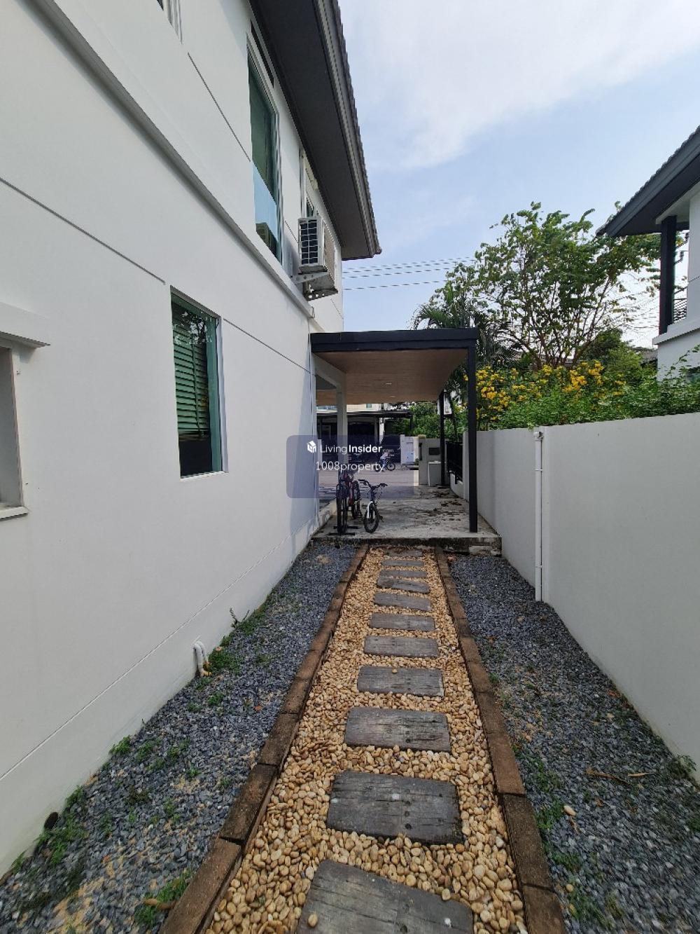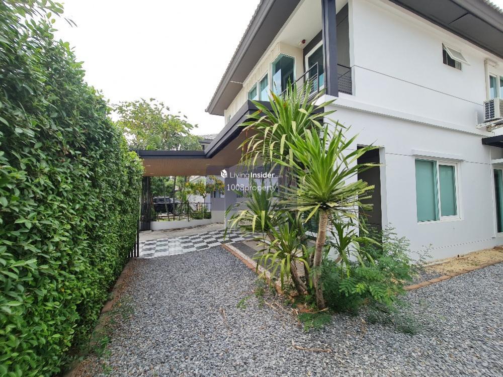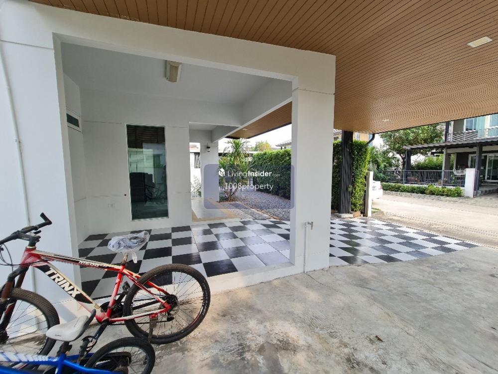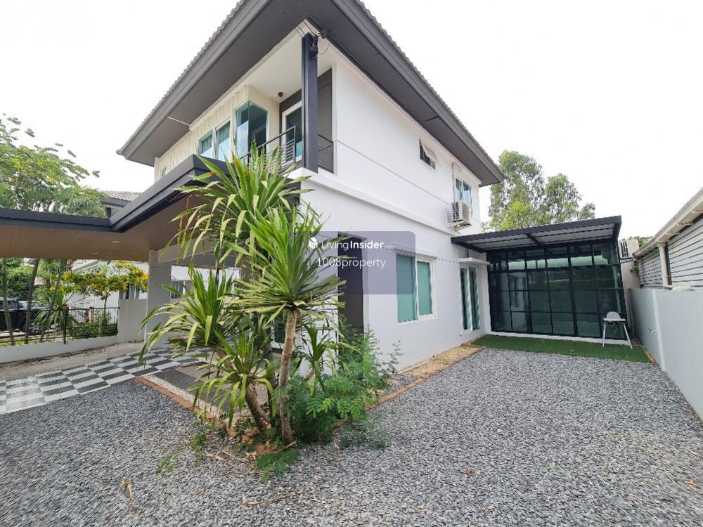 Single house, Pruklada Village, Wongwaen - Hathairat, area 52.20 square meters, 3 bedrooms, 2 bathrooms, beautiful house, good condition, renovated, newly painted throughout, ready to move in, additions and installation of additional equipment including – Original usable area of 104 square meters, additional additions at the back. It is a kitchen and dining room. An extension of 6 micropiles, 18-21 meters deep, with a built-in wooden kitchen set. Indian black granite top, 2-hole Franke stainless steel sink and Hafele stove head, stainless steel top – Ceiling under the roof installed with 6-inch thick SCG insulation – Addition of garage roof, vinyl, lath ceiling – 2 sets of home electrical transformers, size 30/100, separating the electrical cabinet from the main cable; Private house and addition – Living room and master bedroom New wiring Panasonic steel pipe type with downlight, master bedroom fitted with real crystal lamp – Change the electrical switches and plugs in the new house. Panasonic – Daikin inverter air conditioners 5 units; 12000 btu 3 units, 18000 btu 1 unit and 24000 btu 1 unit – Bathroom upstairs Install a 10 mm thick tempered glass shower screen from Shower King with a 4,500 watt Panasonic water heater – Install mosquito screens, curtains, blinds throughout the house – Hitachi water pump, continuous pressure, size 300 watts The atmosphere in the project is pleasant, with beautiful, natural gardens, a clubhouse, swimming pool, and fitness center. Convenient transportation. Next to Hathairat Road, near the expressway entry and exit point, Chatuchot Dan, Sarasas Witaed Sai Mai School, Maruay Market, Hathairat
