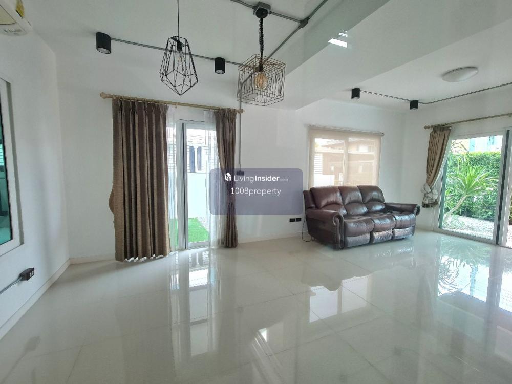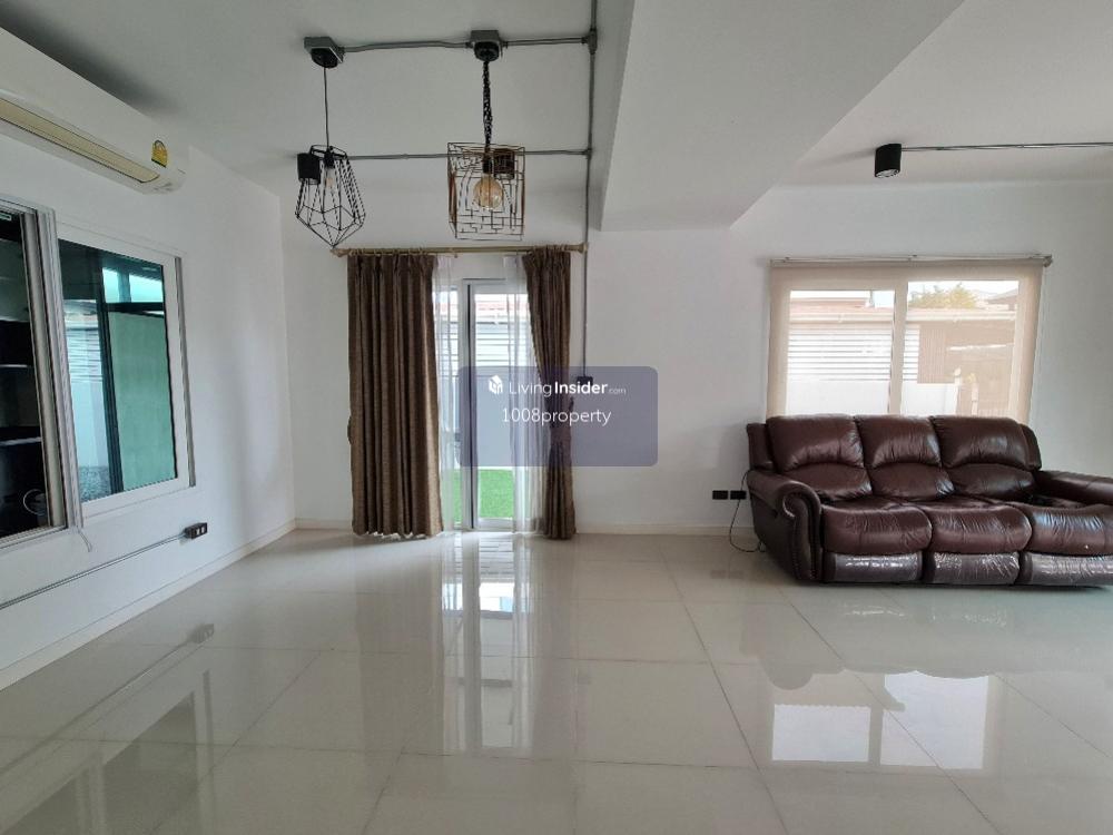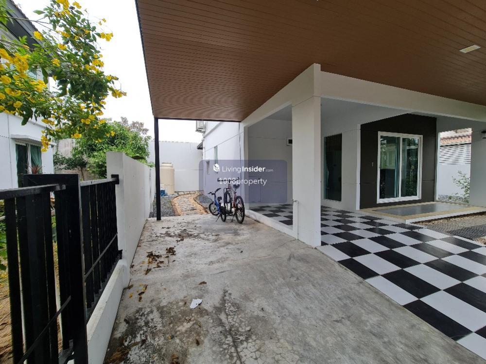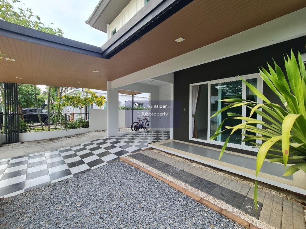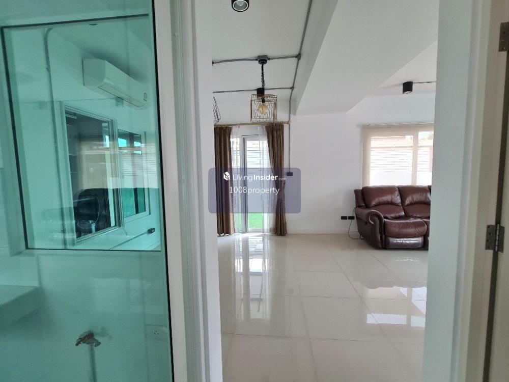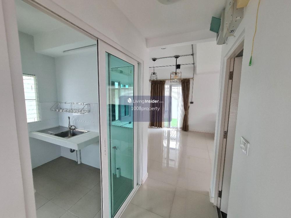 Single house, Pruklada Village, Wongwaen - Hathairat, area 52.20 square meters, 3 bedrooms, 2 bathrooms, beautiful house, good condition, renovated, newly painted throughout, ready to move in, additions and installation of additional equipment including – Original usable area of 104 square meters, additional additions at the back. It is a kitchen and dining room. An extension of 6 micropiles, 18-21 meters deep, with a built-in wooden kitchen set. Indian black granite top, 2-hole Franke stainless steel sink and Hafele stove head, stainless steel top – Ceiling under the roof installed with 6-inch thick SCG insulation – Addition of garage roof, vinyl, lath ceiling – 2 sets of home electrical transformers, size 30/100, separating the electrical cabinet from the main cable; Private house and addition – Living room and master bedroom New wiring Panasonic steel pipe type with downlight, master bedroom fitted with real crystal lamp – Change the electrical switches and plugs in the new house. Panasonic – Daikin inverter air conditioners 5 units; 12000 btu 3 units, 18000 btu 1 unit and 24000 btu 1 unit – Bathroom upstairs Install a 10 mm thick tempered glass shower screen from Shower King with a 4,500 watt Panasonic water heater – Install mosquito screens, curtains, blinds throughout the house – Hitachi water pump, continuous pressure, size 300 watts The atmosphere in the project is pleasant, with beautiful, natural gardens, a clubhouse, swimming pool, and fitness center. Convenient transportation. Next to Hathairat Road, near the expressway entry and exit point, Chatuchot Dan, Sarasas Witaed Sai Mai School, Maruay Market, Hathairat