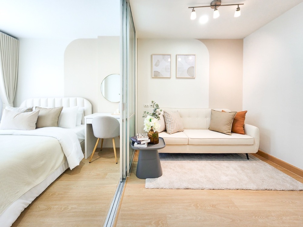 Condo has arrived #On Nut Pattanakarn zone Beautiful, minimalist, smooth, white, wide #near Seacon Srinakarin, beautiful room as shown on the Mininal cover, cute, cute, ready to move in with your bags!! 🎉 . ╔══════════╗ 🌟Very special only 1,590,000 baht 🌟 ╚══════════╝ . 🌸Condo Lu Mpinee Ville On Nut-Pattanakarn🌸 Building C1, 7th floor, garden view, size 26 sq m, large room . 🛋️ Complete with furniture, complete as shown in the picture -Newly changed floor!!! -Newly painted -Furniture, built-in bed Built-in TV shelf Built-in dressing table, built-in kitchen, great value, complete with cover, complete with mattress, blanket and pillow - Sofa, rug, center table, Ill give it to you. - 2 layers of luxurious, good-looking curtains and kitchen curtains -2 air conditioners 🌟 -Bird netting . 📌Map:: https://maps.app.goo.gl/zUZ2DWqLWEWKTVT28 . 🤗💬If interested in details, talk to us. Come and consult for free 📞 Jip Contact number or @buddyhome . Let us be your buddy to take care of you. #BuddyHomeBuddyYou Design by : Home Buddy Design co.,ltd "The dream home will no longer only exist in dreams."